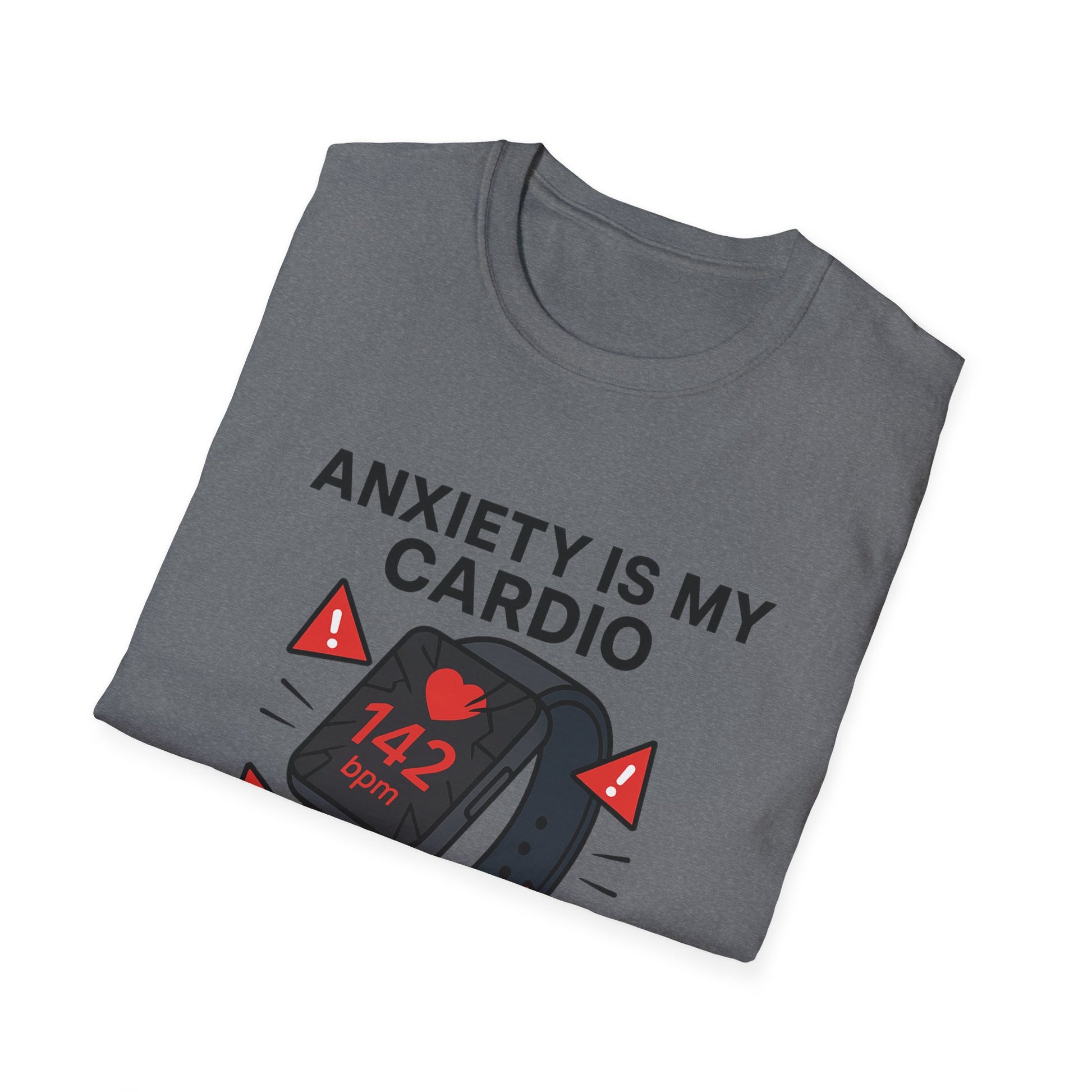 Wear your sense of humour proudly. This unisex tee features a bold “Anxiety is My Cardio” graphic that resonates with anyone who turns stress into strength. It's soft, comfortable and perfect for everyday wear.