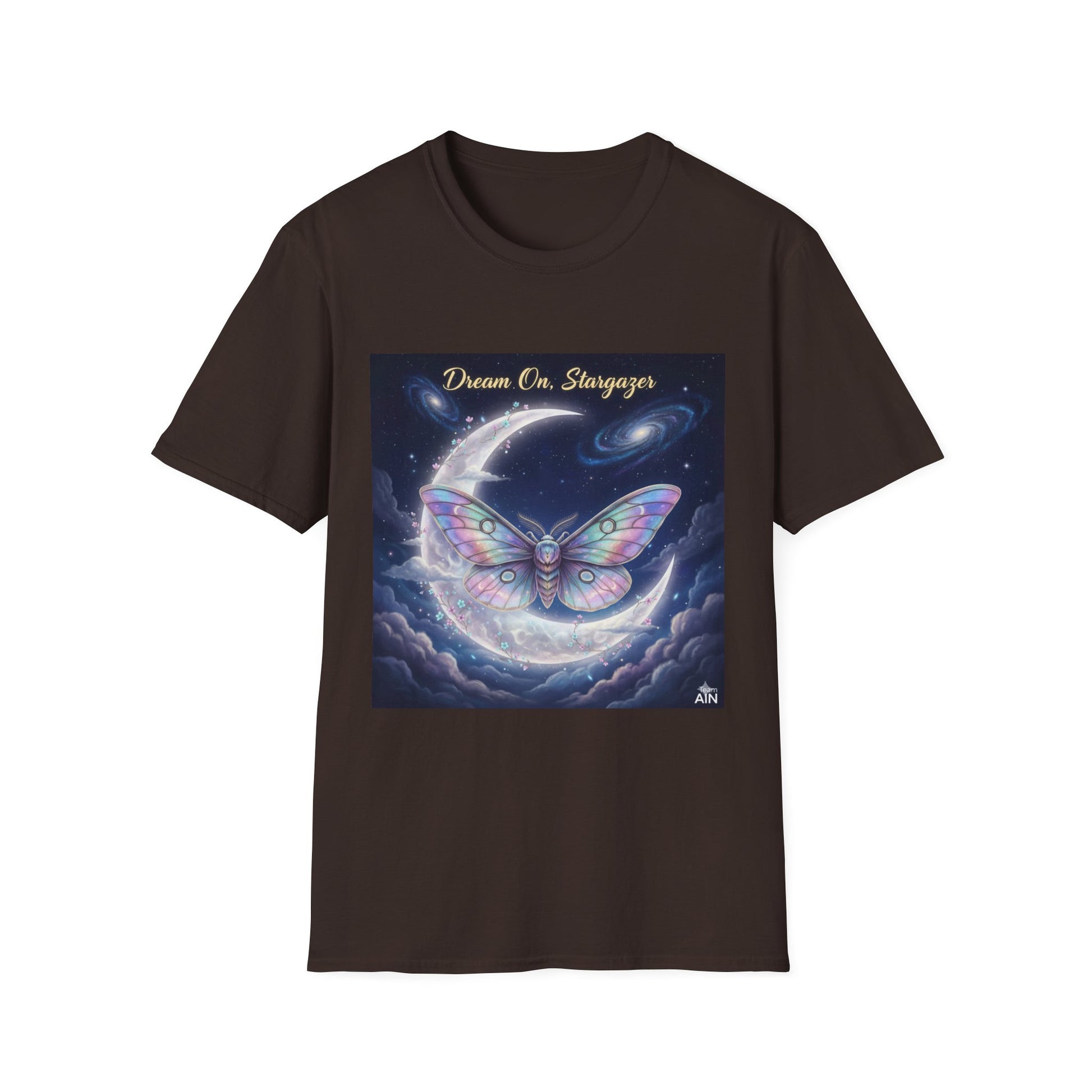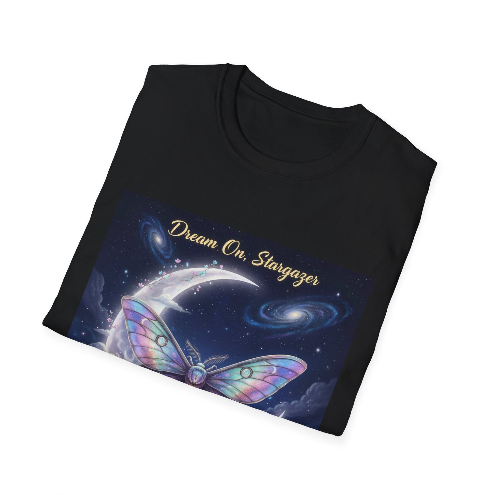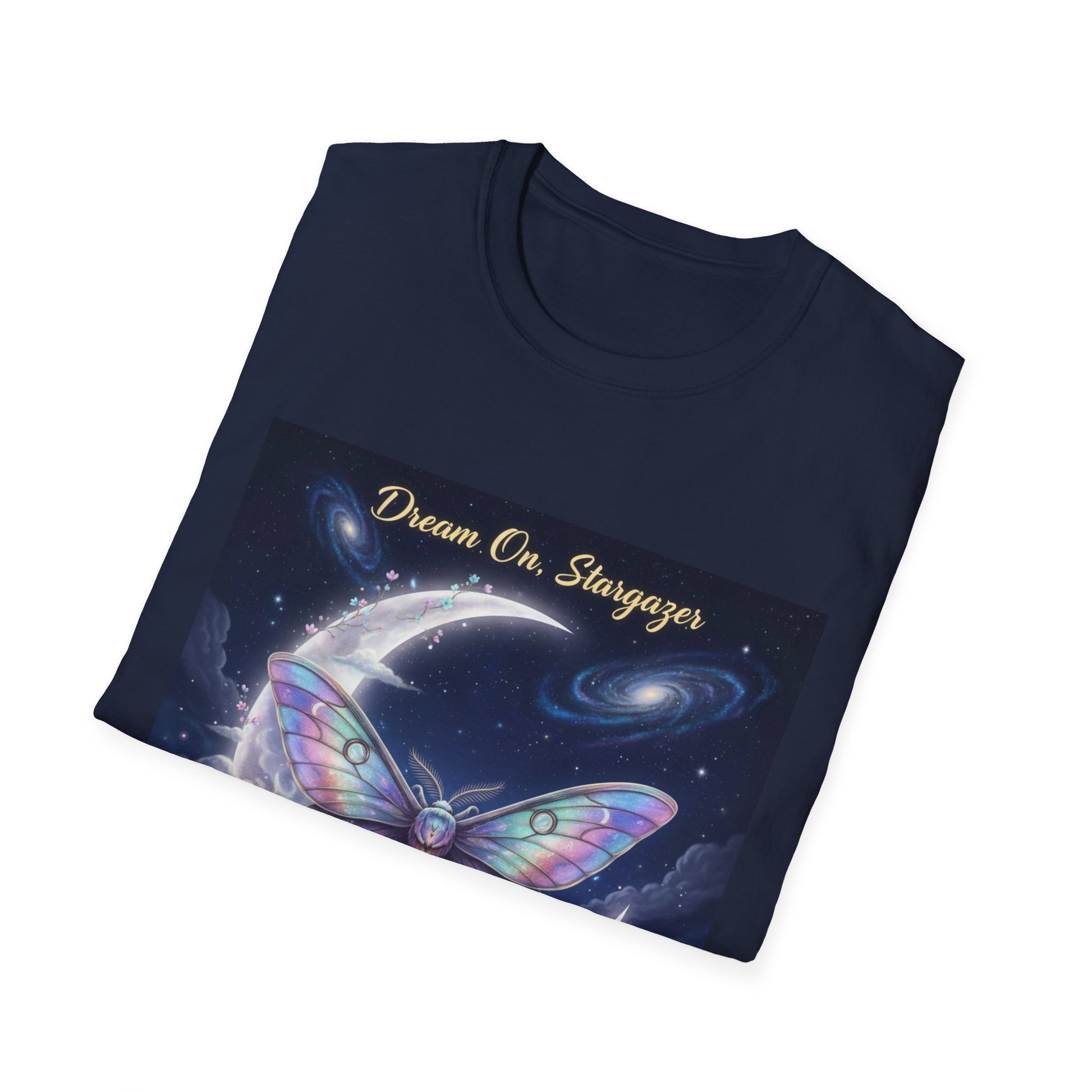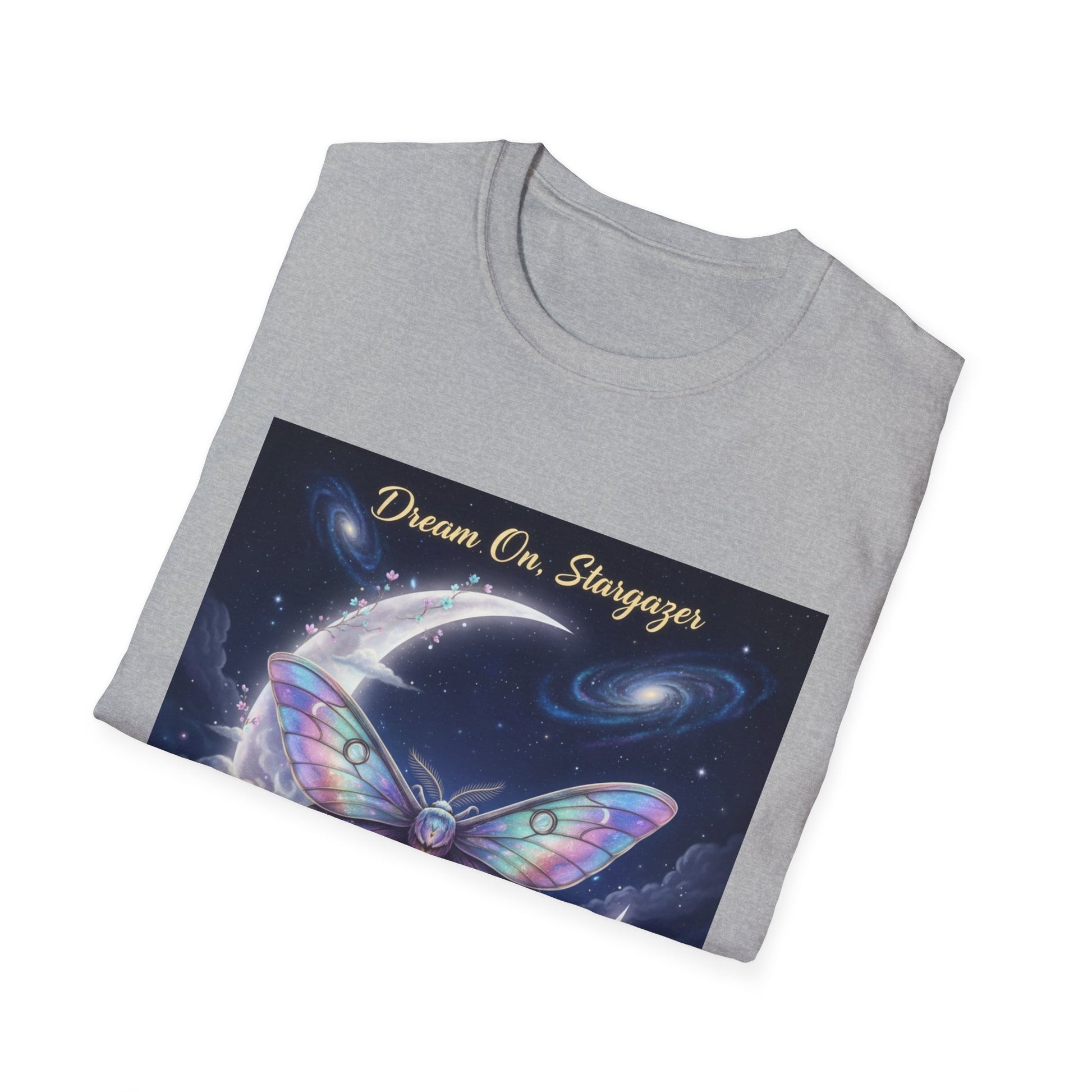 Butterfly Dreams Unisex T-Shirt | Softstyle Tee for Dreamers, Gifts for Her, Inspirational Apparel, Nature Lovers, Moon & Butterfly Design