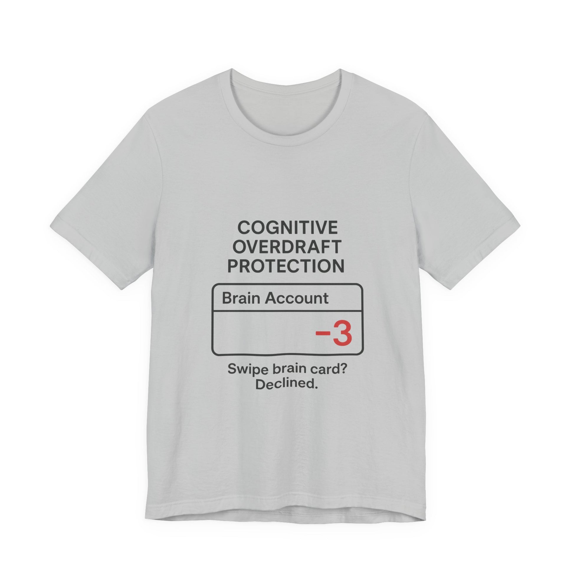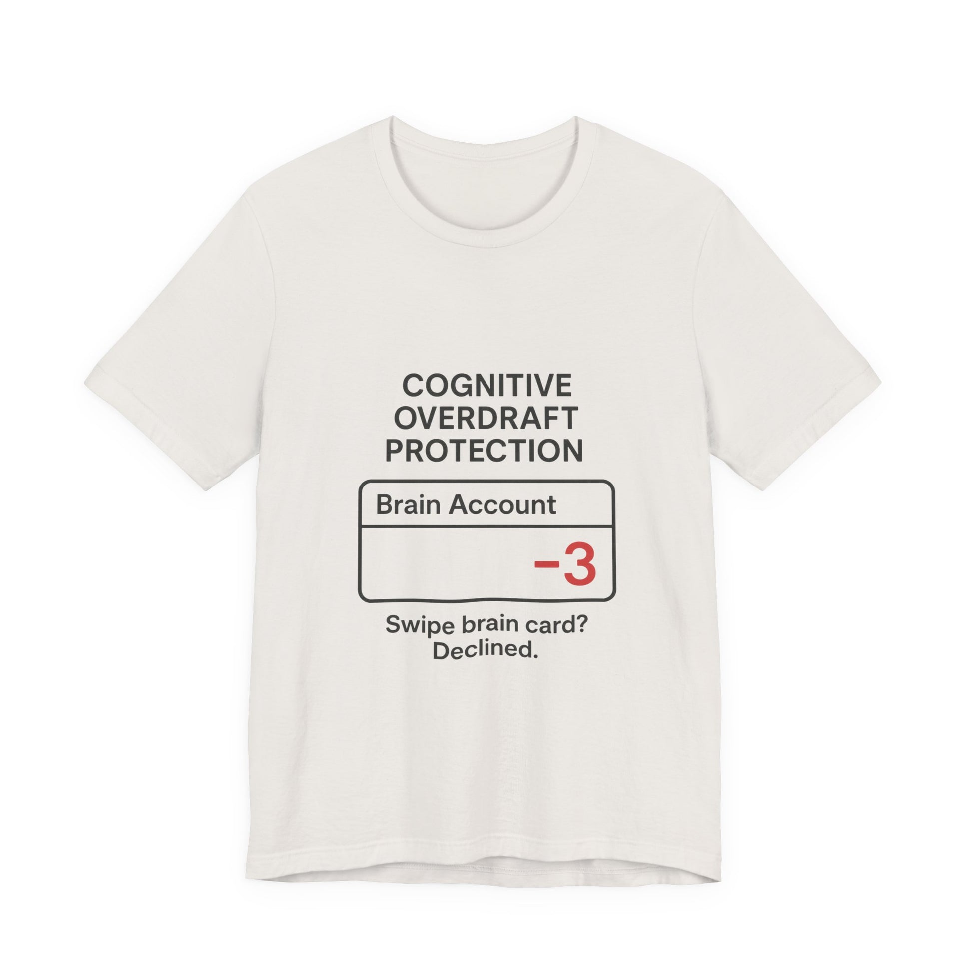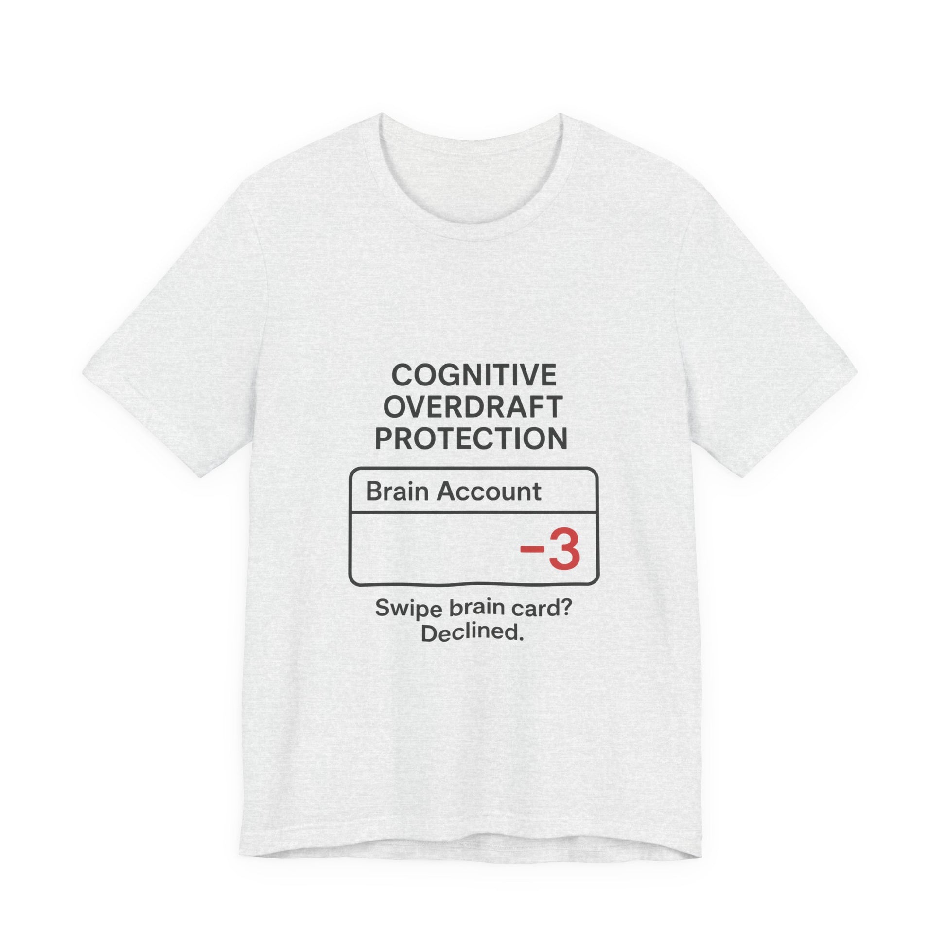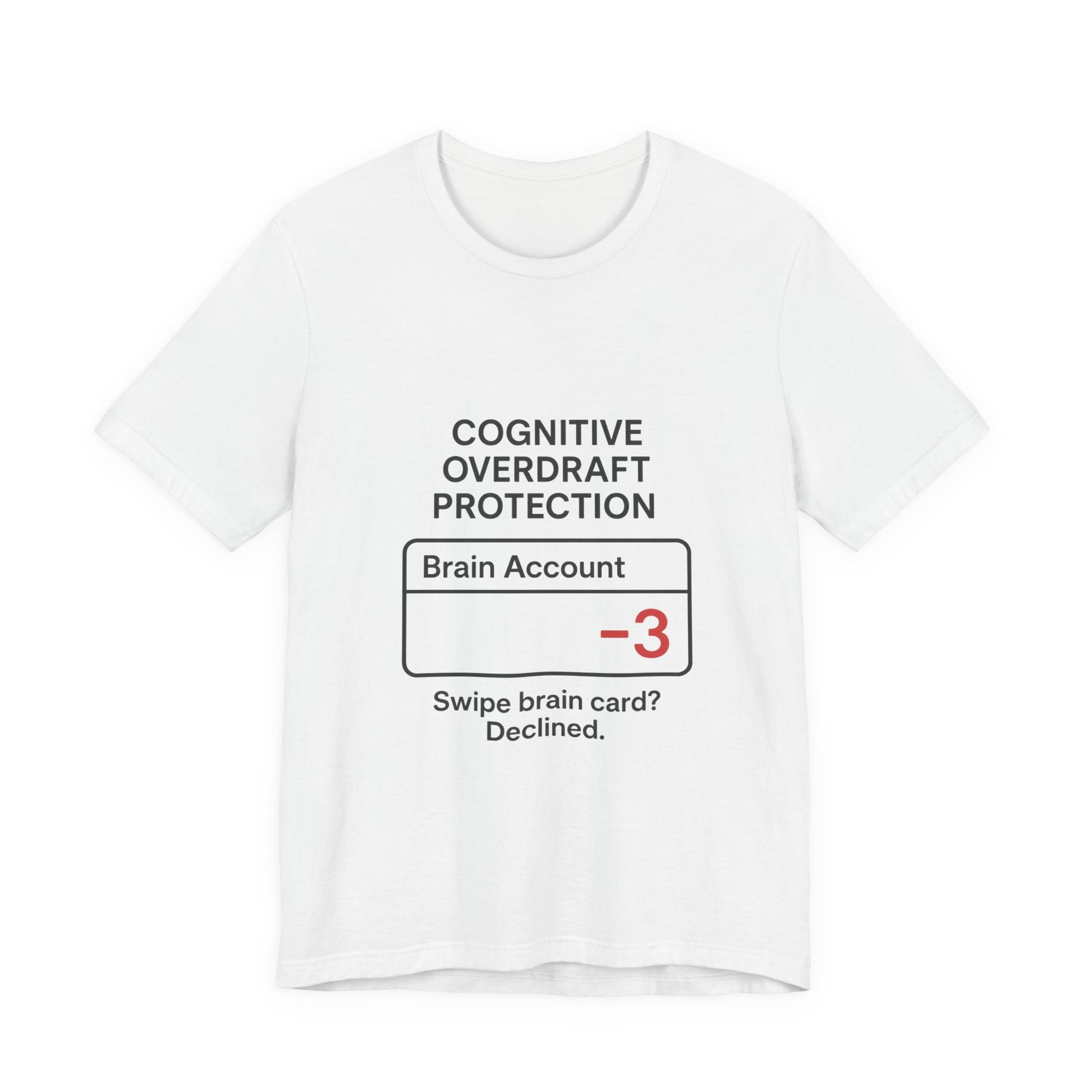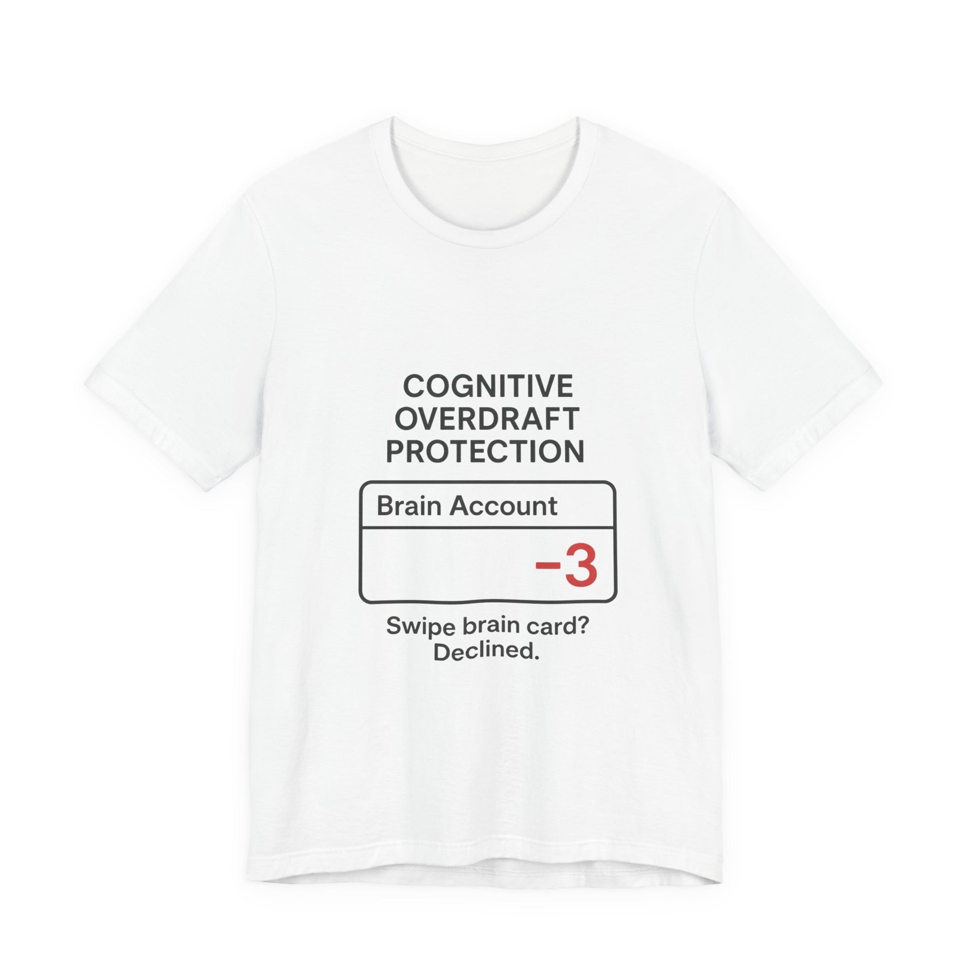 Cognitive Overdraft Protection Tee, Funny T-Shirt, Gift for Mental Health Awareness, Casual Wear, Quirky Graphic Shirt, Unisex White Tee