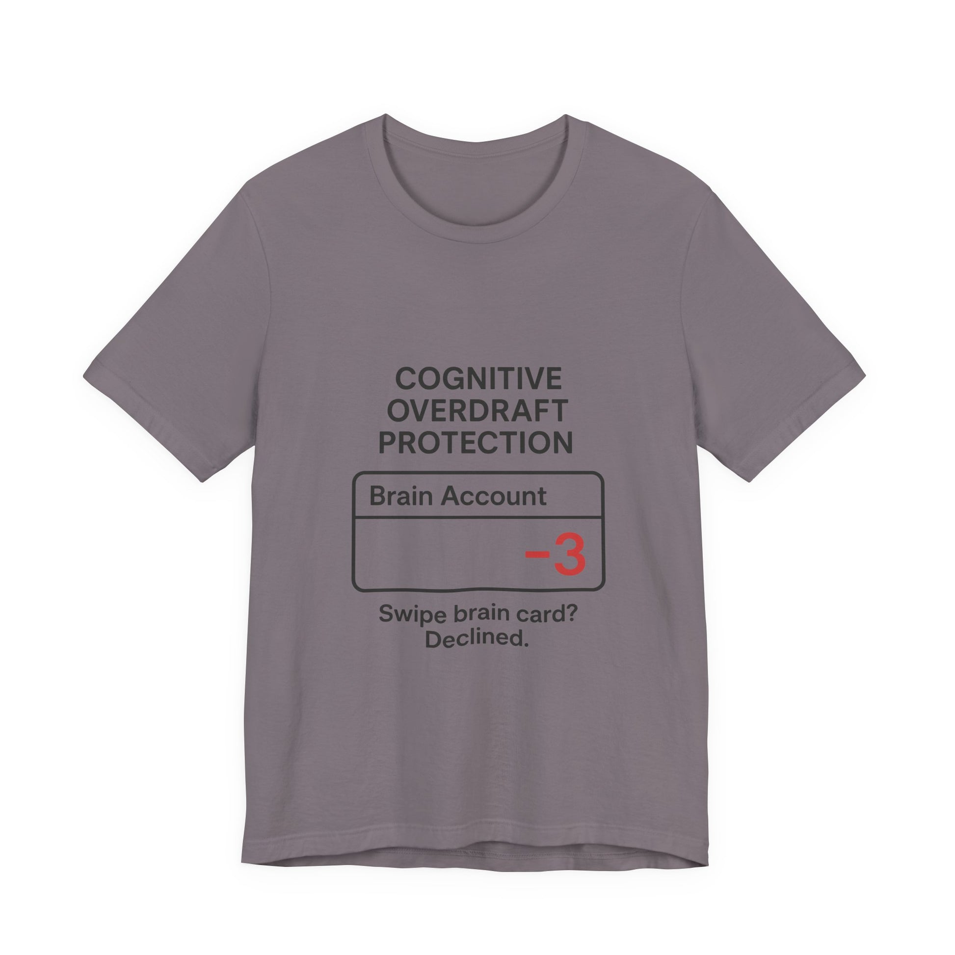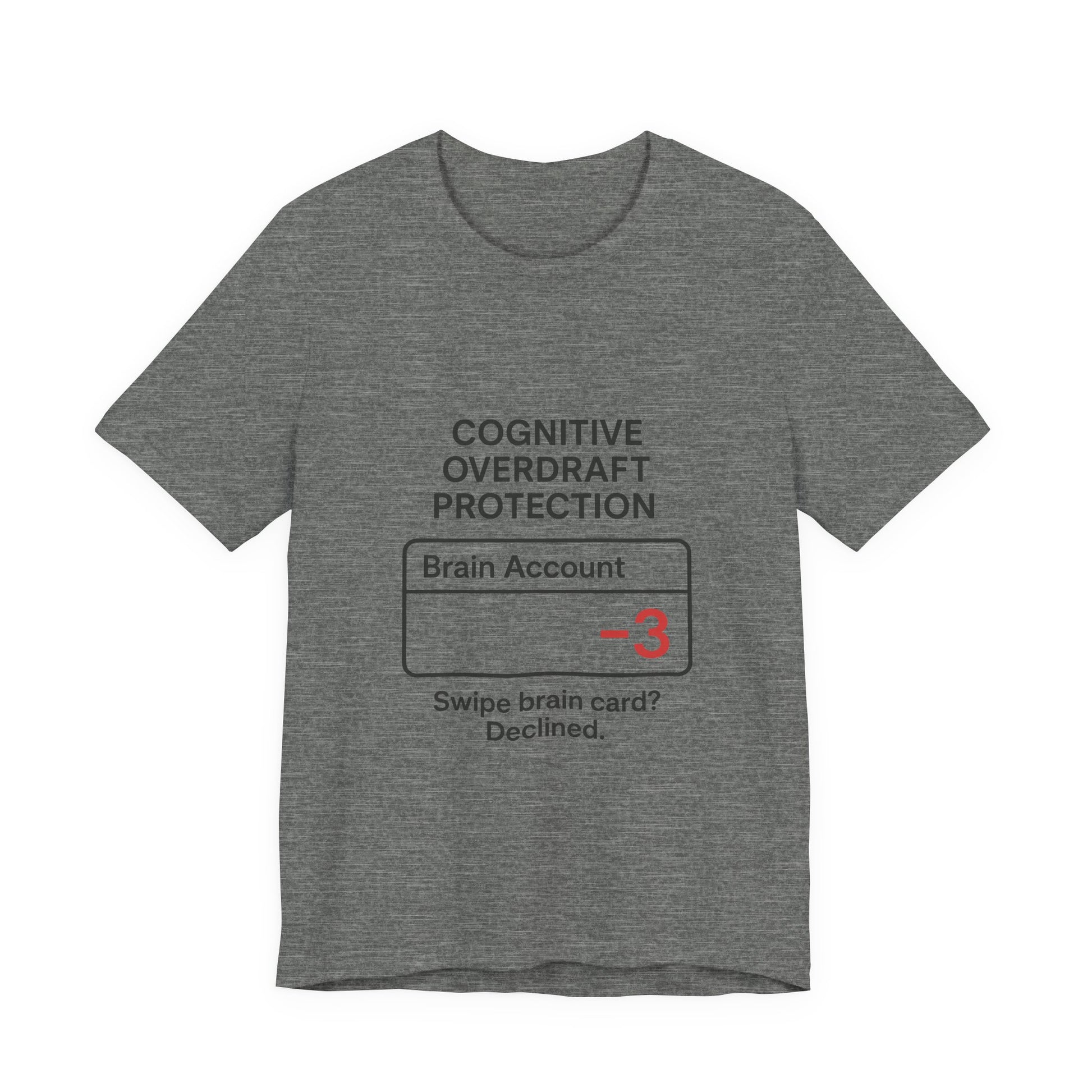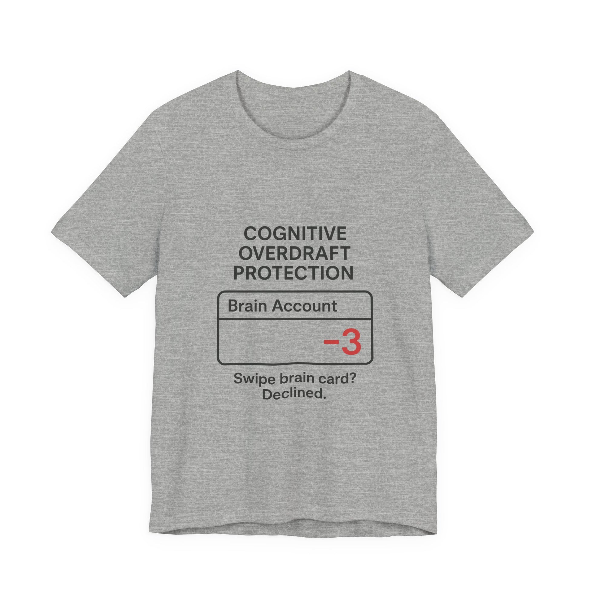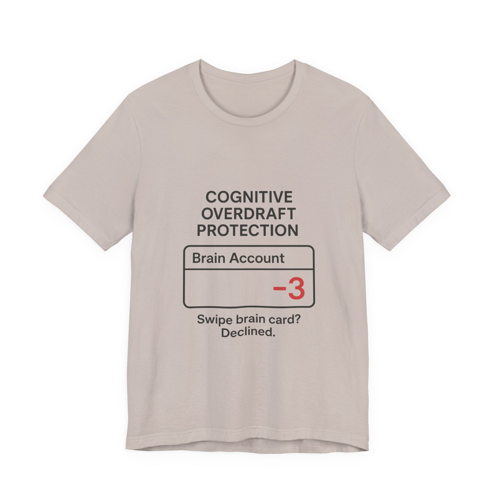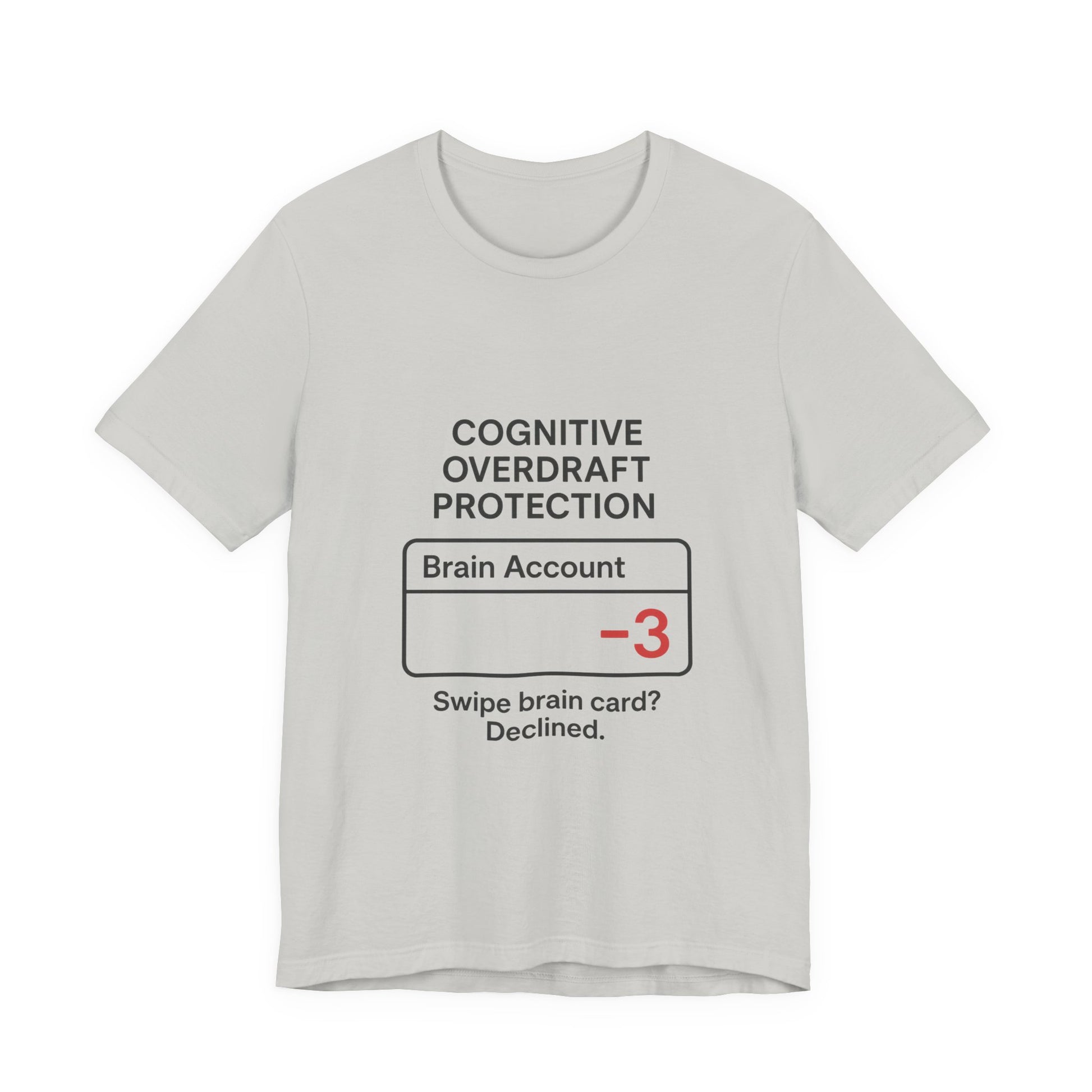 Cognitive Overdraft Protection Tee, Funny T-Shirt, Gift for Mental Health Awareness, Casual Wear, Quirky Graphic Shirt, Unisex White Tee