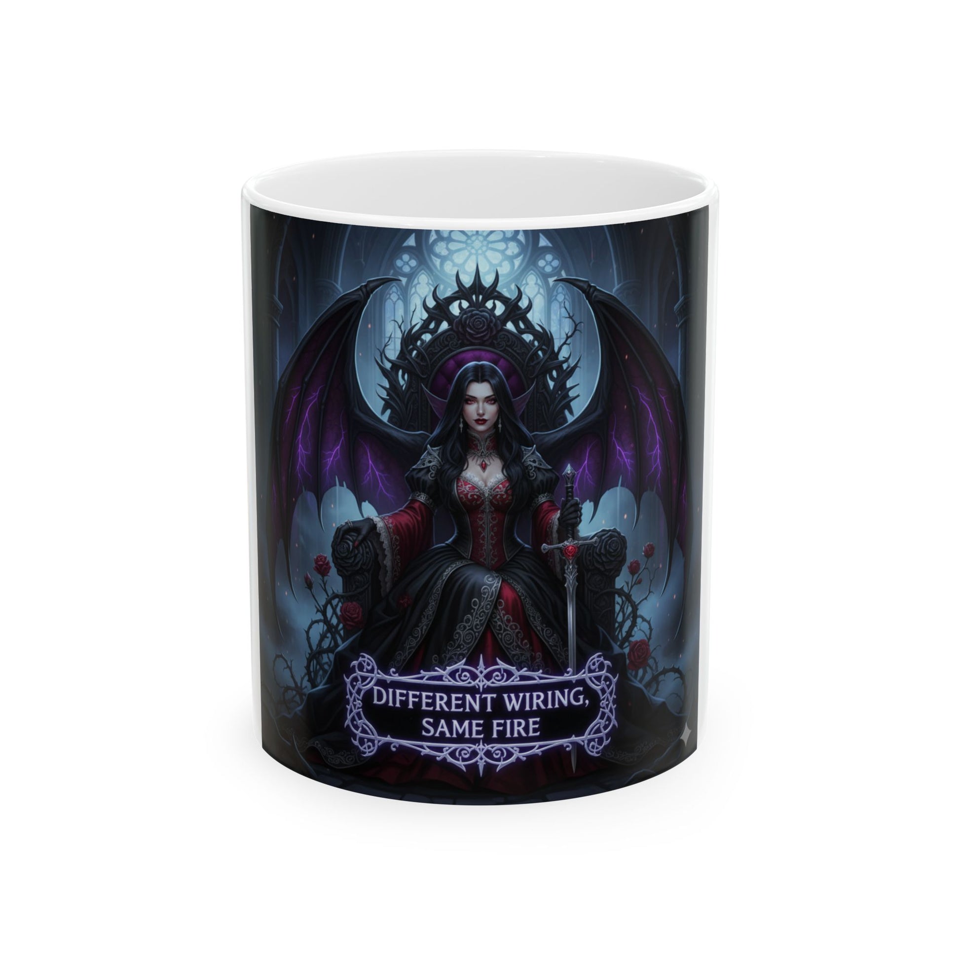 Rule your mornings with this gothic queen coffee mug. Perfect for gifts, rituals, and celebrating neurodivergent pride with dark fantasy fire.