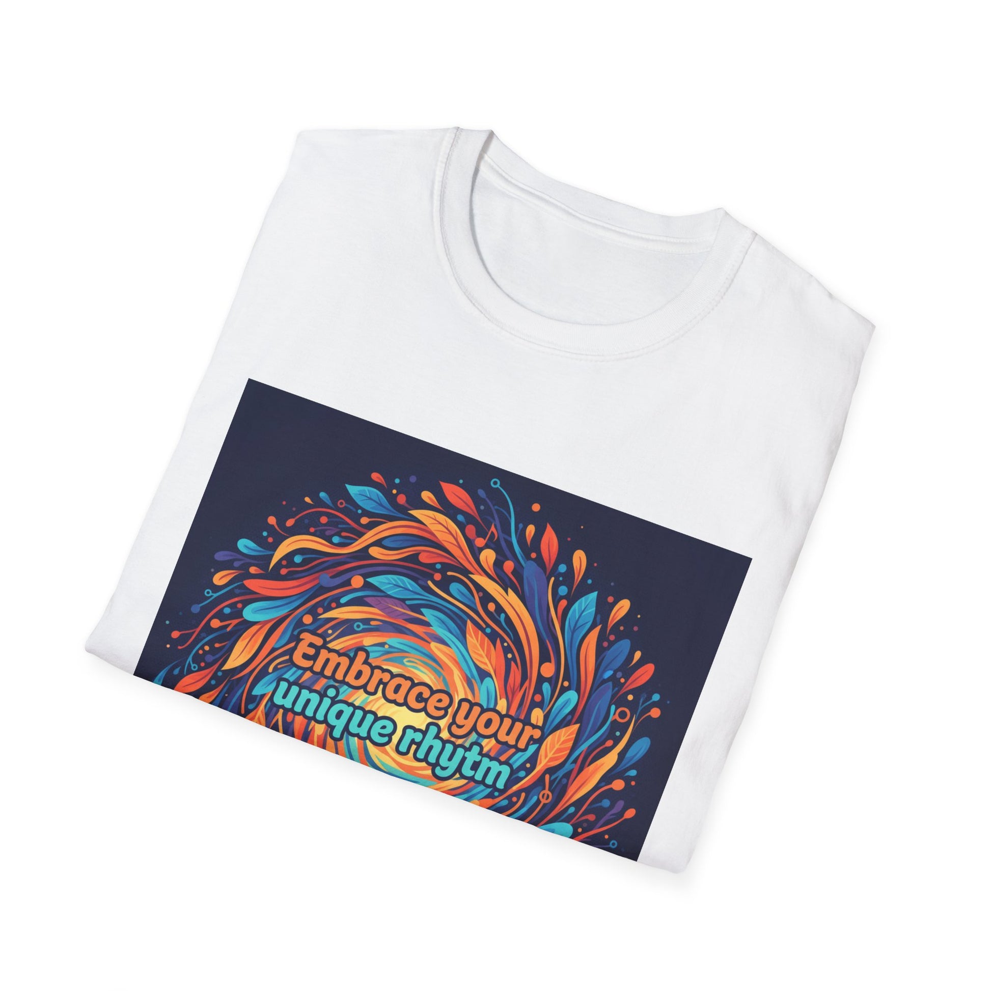 "Embrace Your Unique Rhythm" Neurodiversity-Inspired T-Shirt – Swirl Art Design on White Unisex Tee
