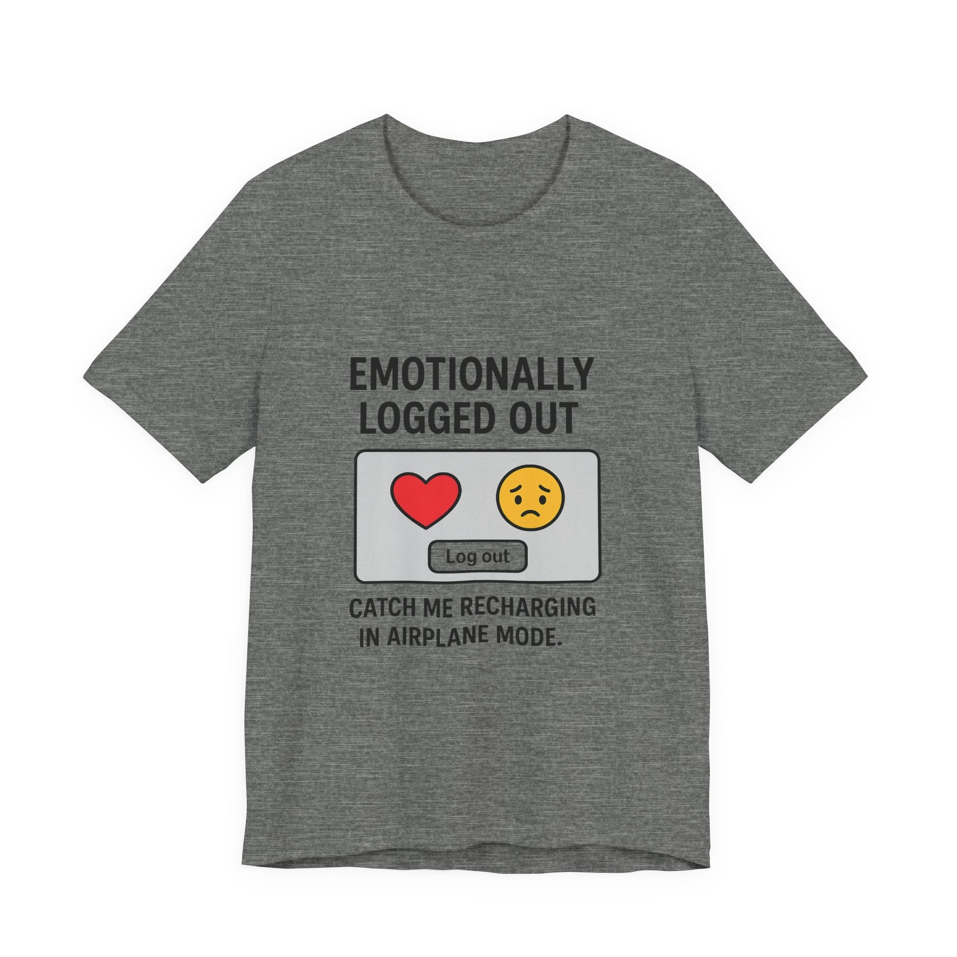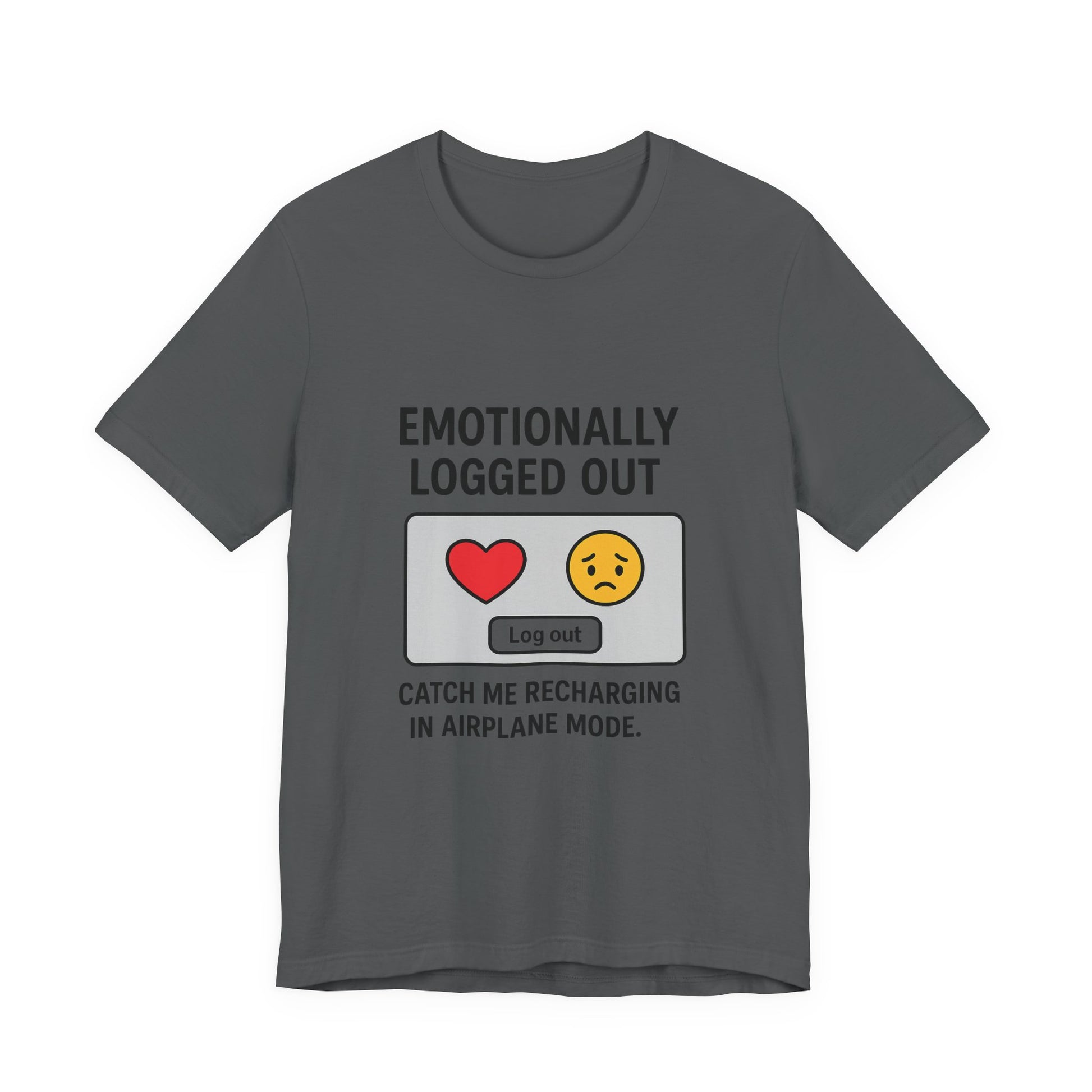 Emotionally Logged Out Tee, Funny T-Shirt, Airplane Mode Shirt, Gift for Tech Lovers, Casual Wear, Relaxation Apparel