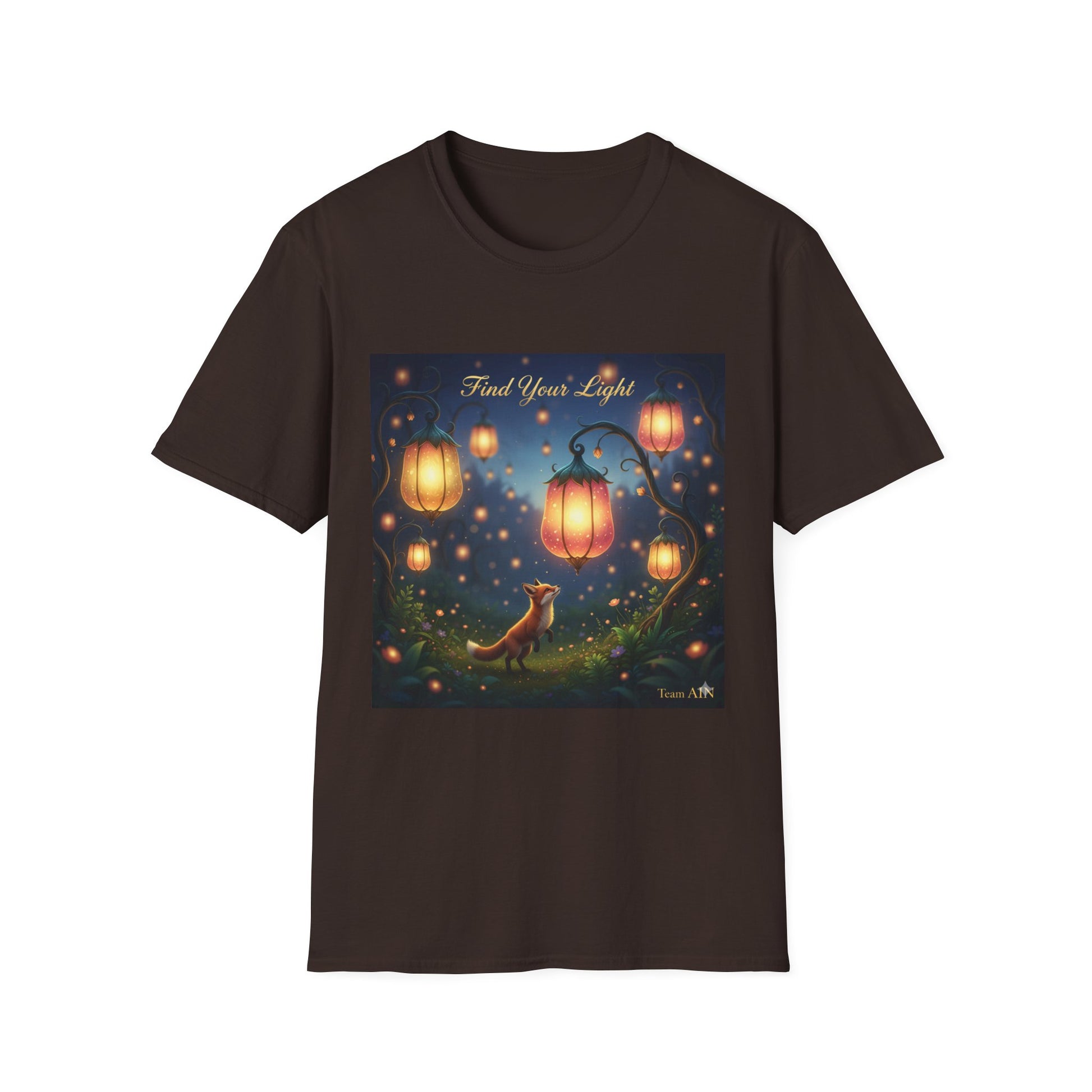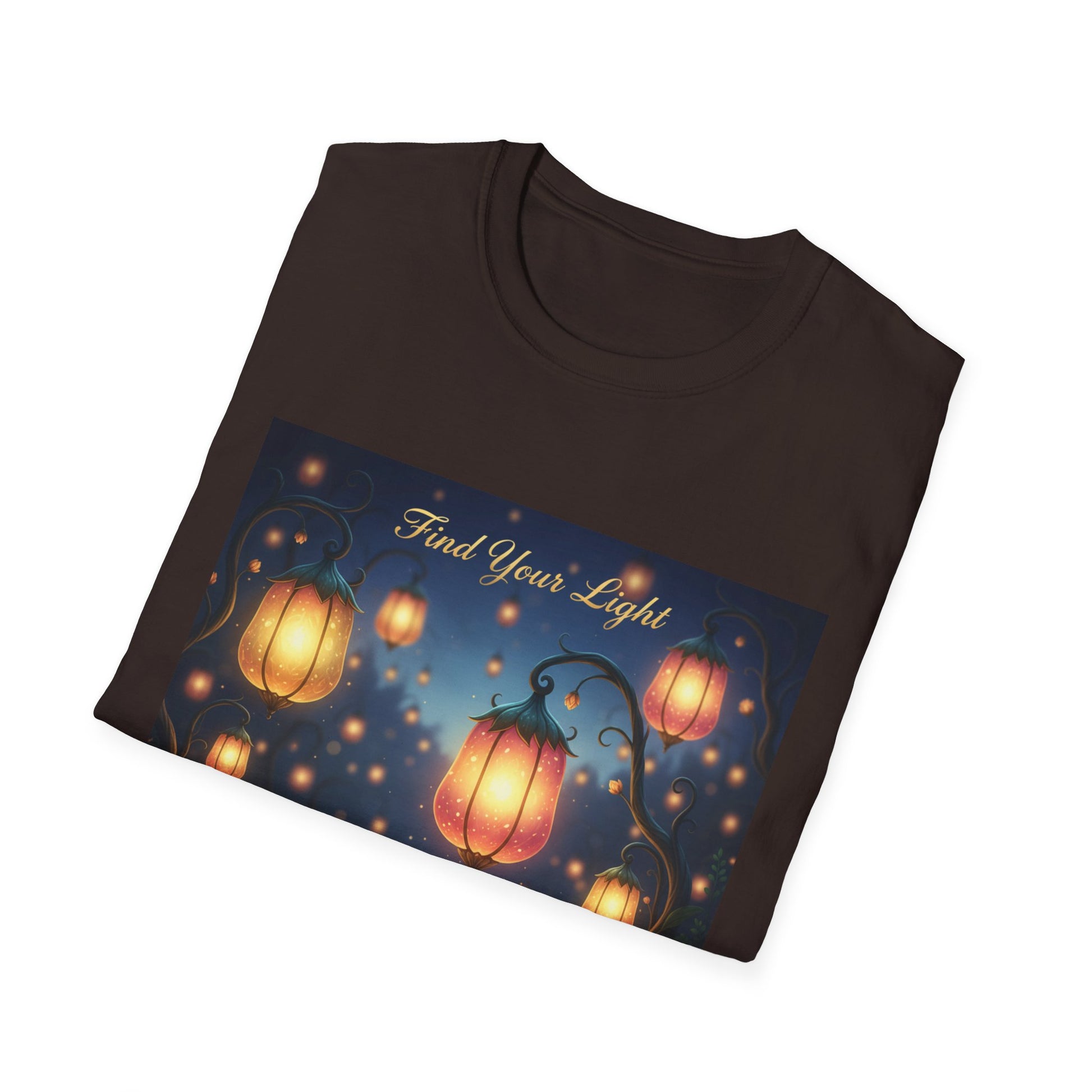 Enchanting 'Find Your Light' Unisex Softstyle T-Shirt, Inspirational Tee, Nature Lover Gift, Cozy Casual Wear, Lantern Art Shirt