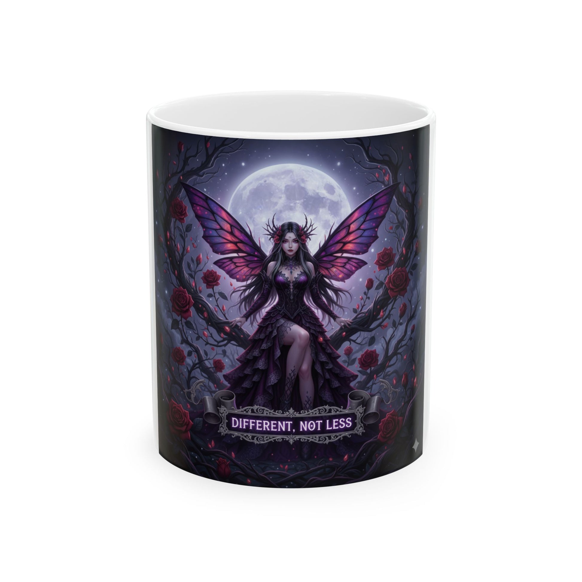Celebrate neurodivergent pride with this gothic fairy mug. A unique, inclusive coffee cup perfect for gifts, rituals, and daily empowerment.