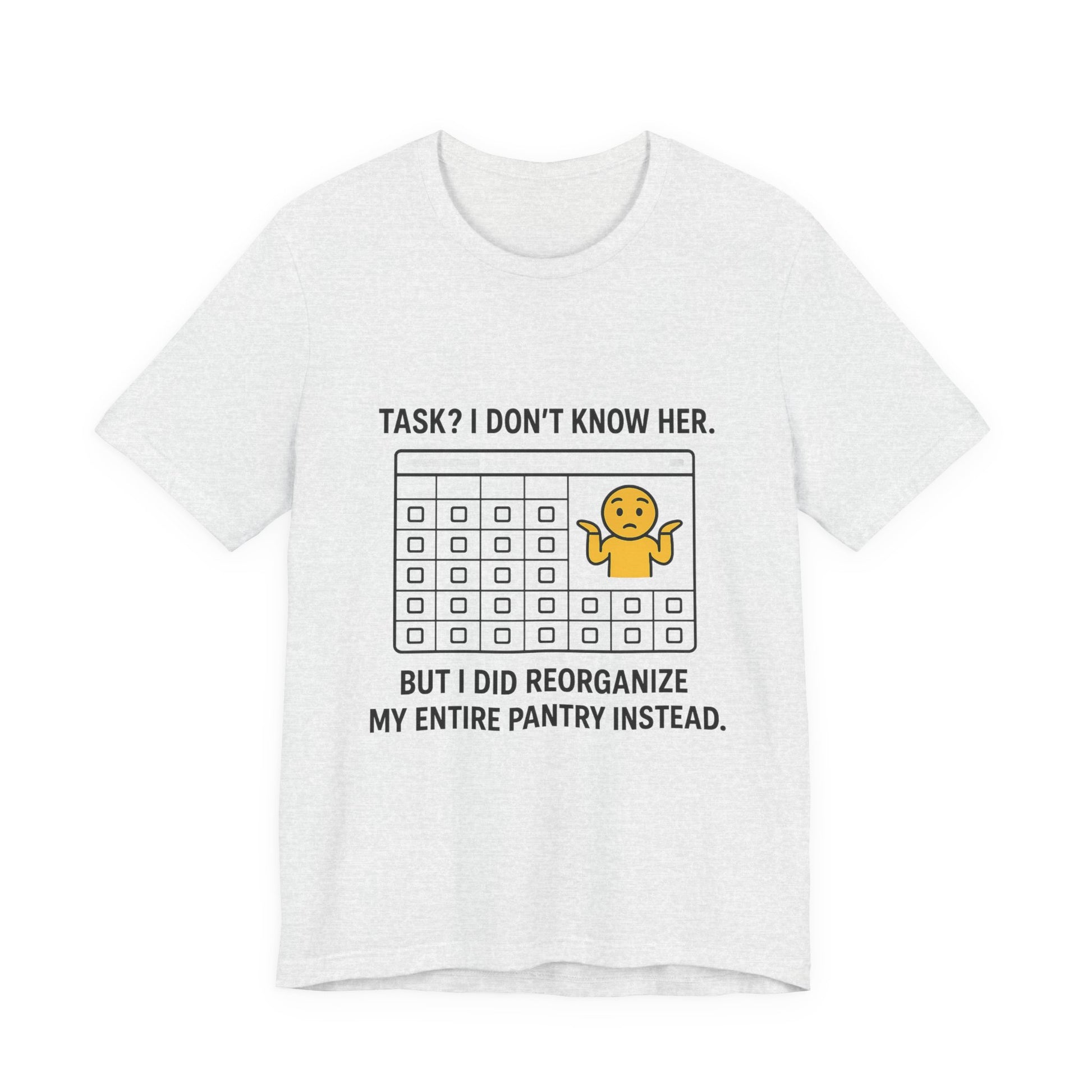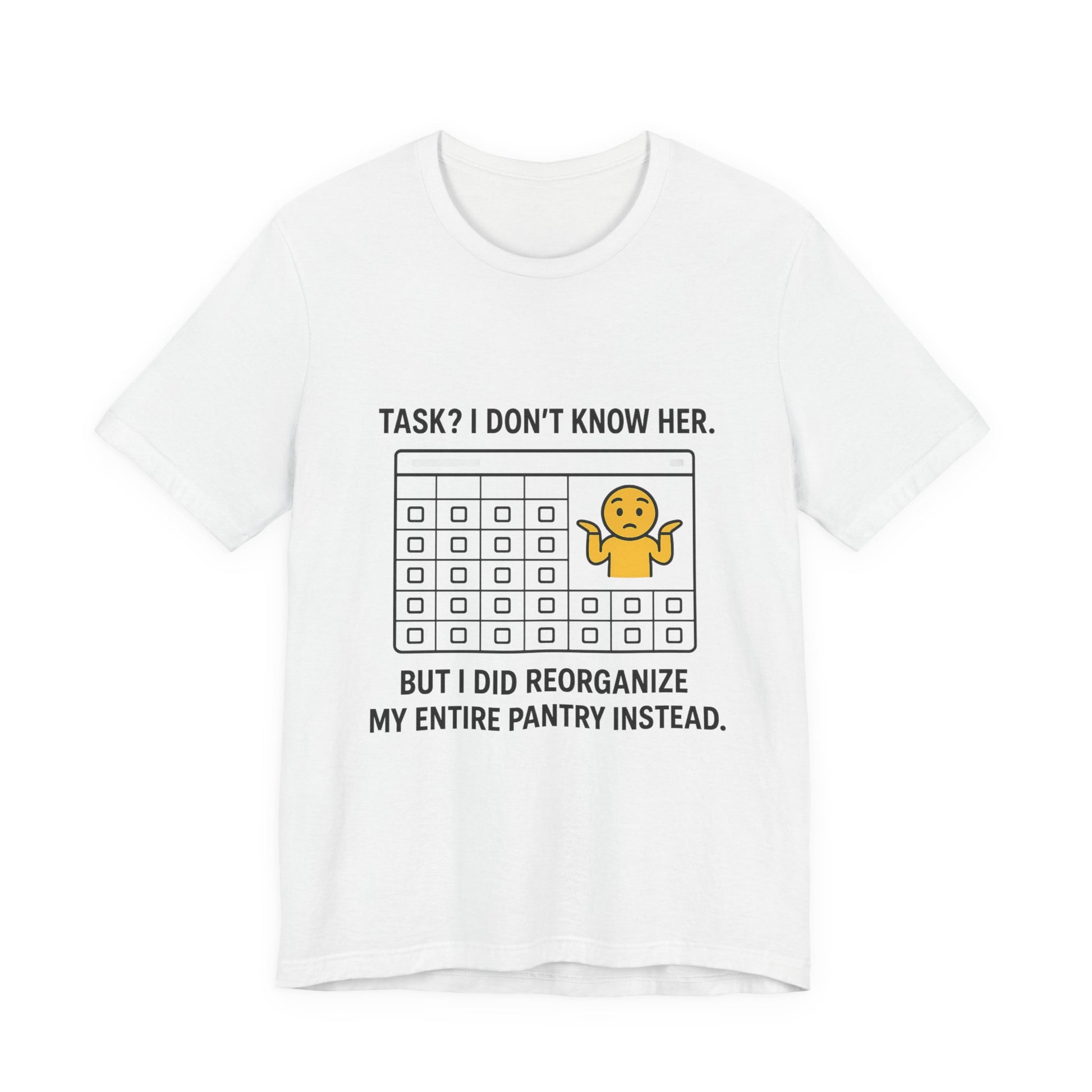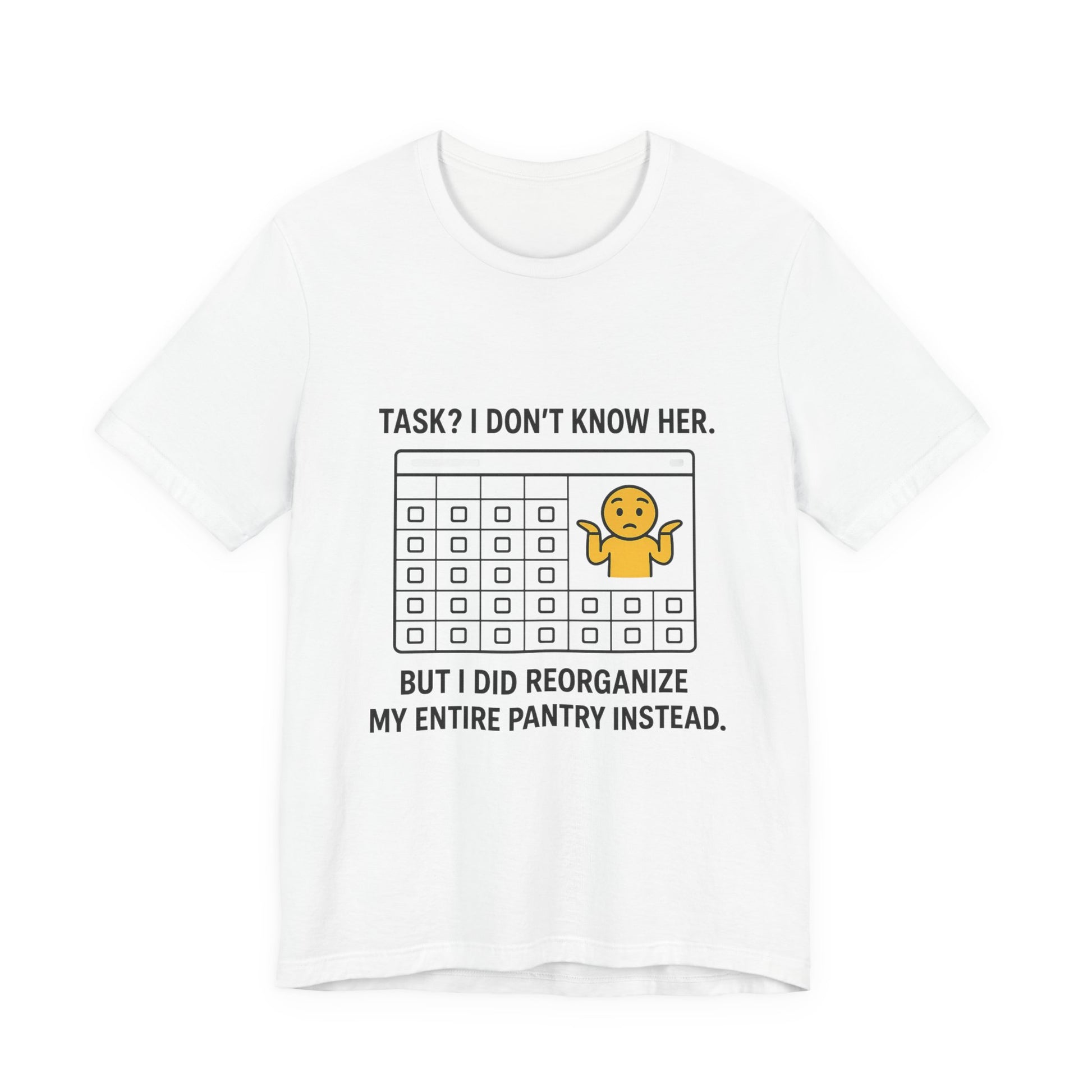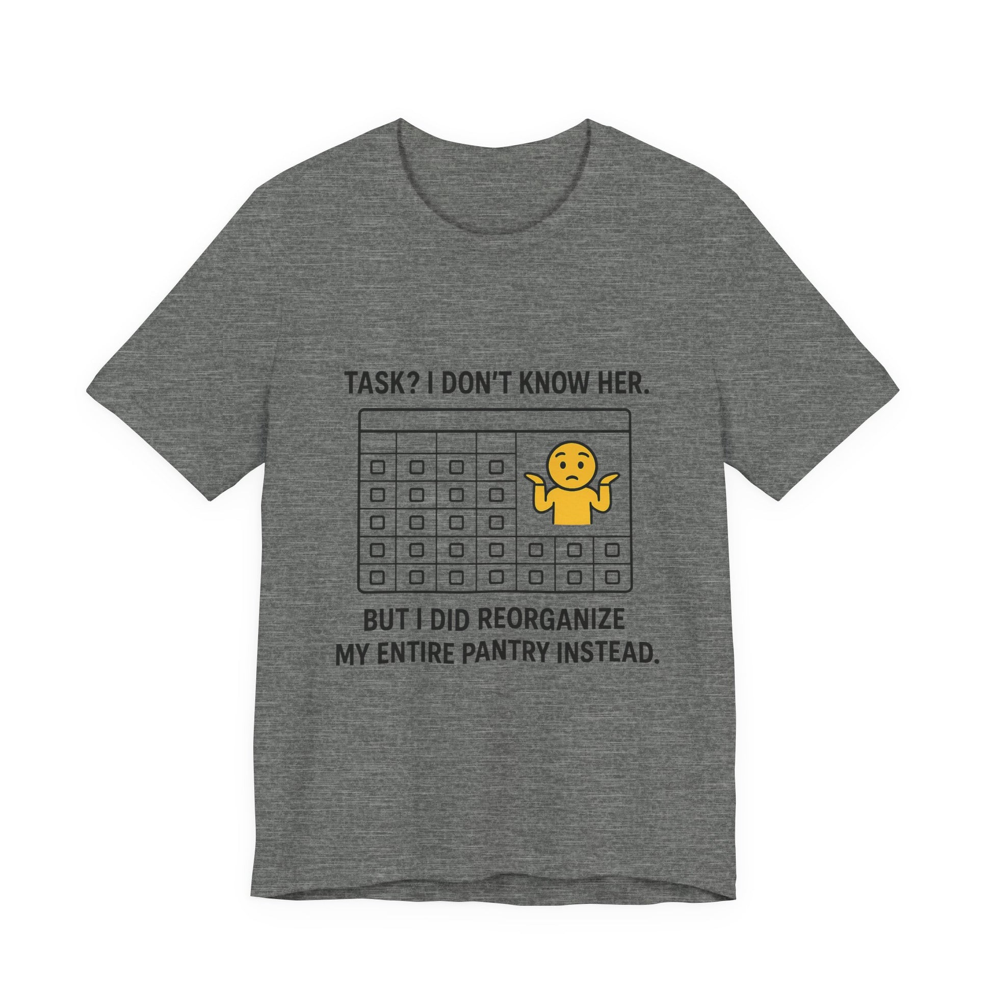 Humorous Pantry Organization Tee, Funny T-Shirt, Gift for Organizers, Quirky Casual Wear, Relatable Humor Shirt, Task Procrastination Tee