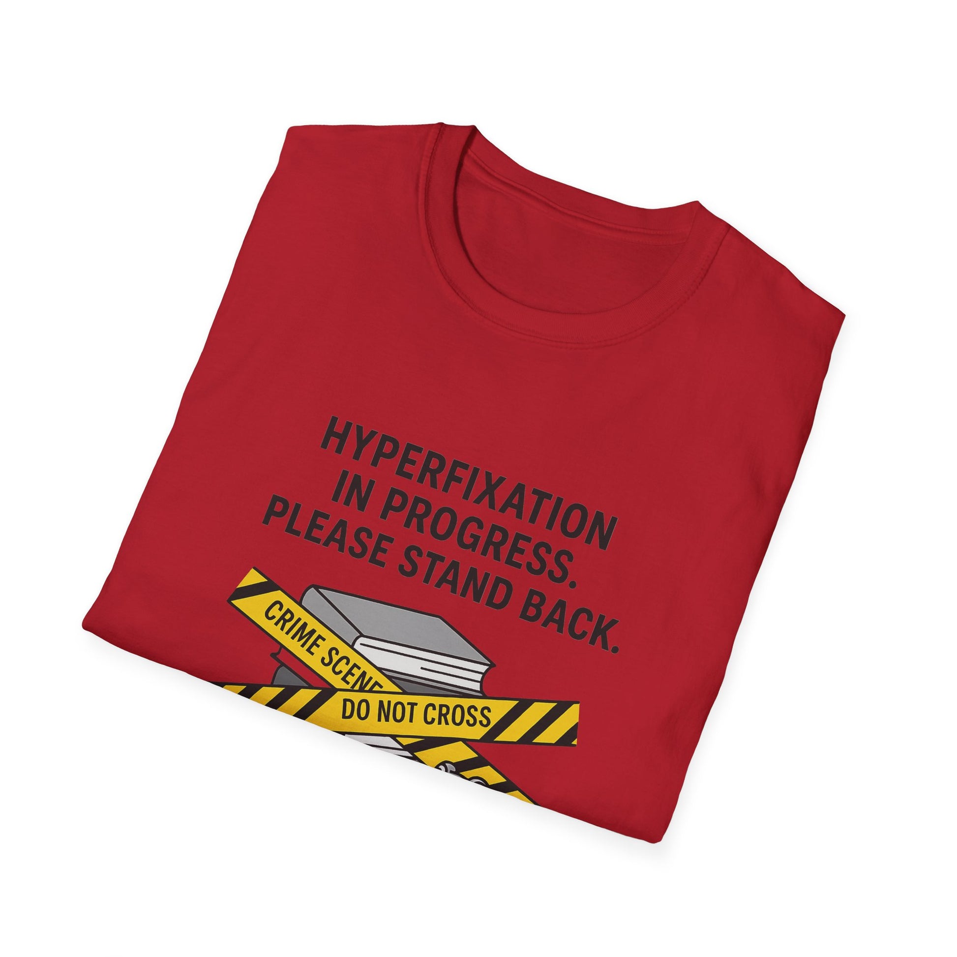 When you're deep in your favorite hobby, let this tee say it for you. Featuring a playful 'Hyperfixation in Progress' graphic, this soft cotton shirt is perfect for hobbyists and friends who understand. Comfortable and versatile for everyday wear or as a fun gift for fellow enthusiasts.