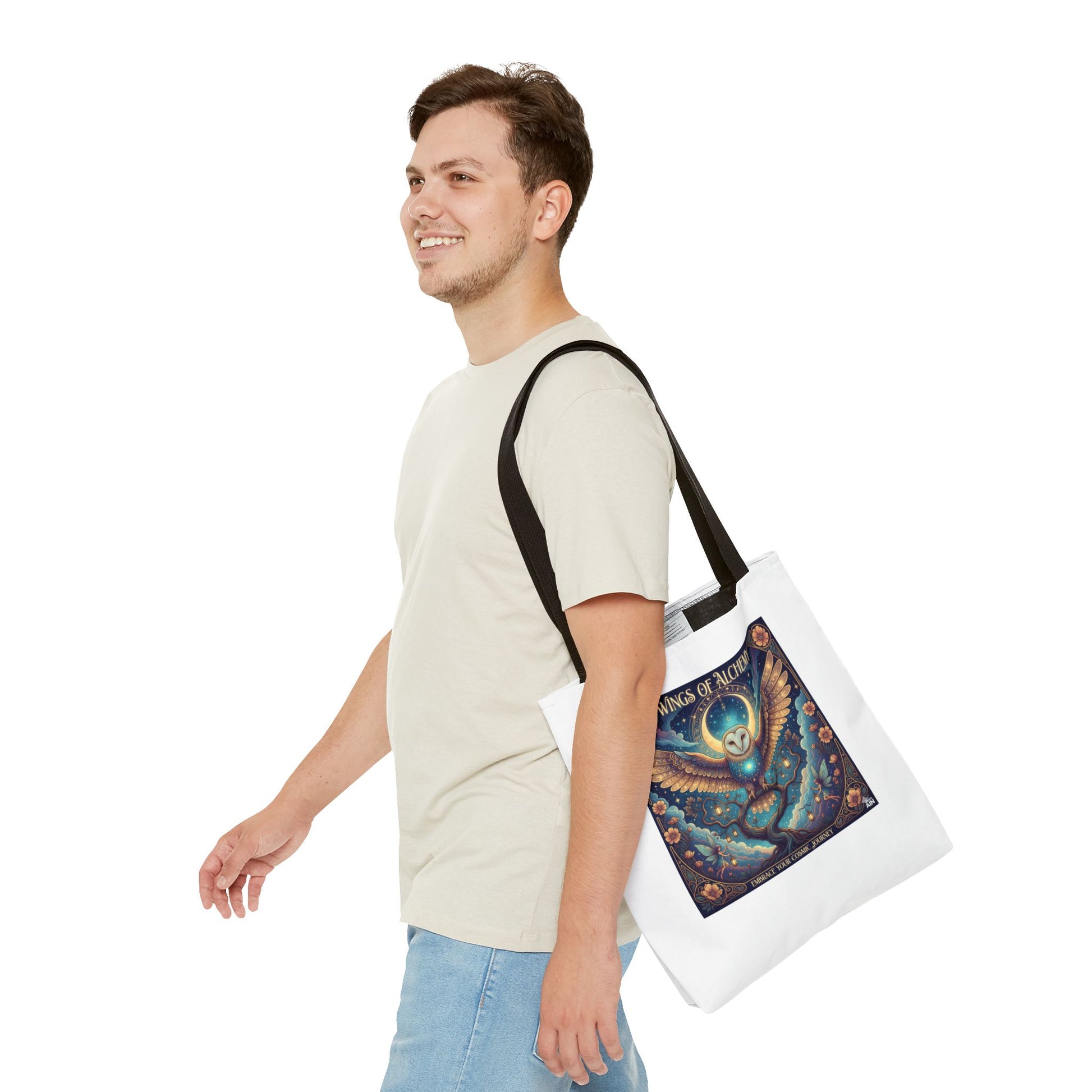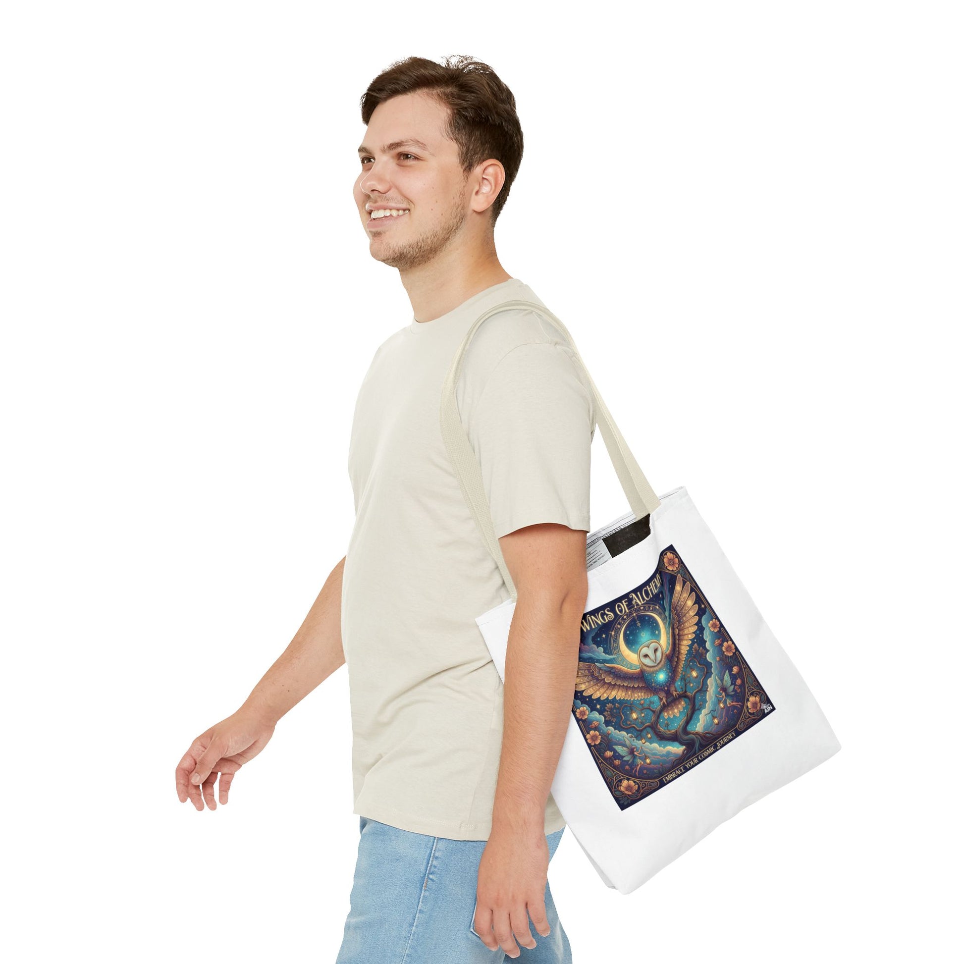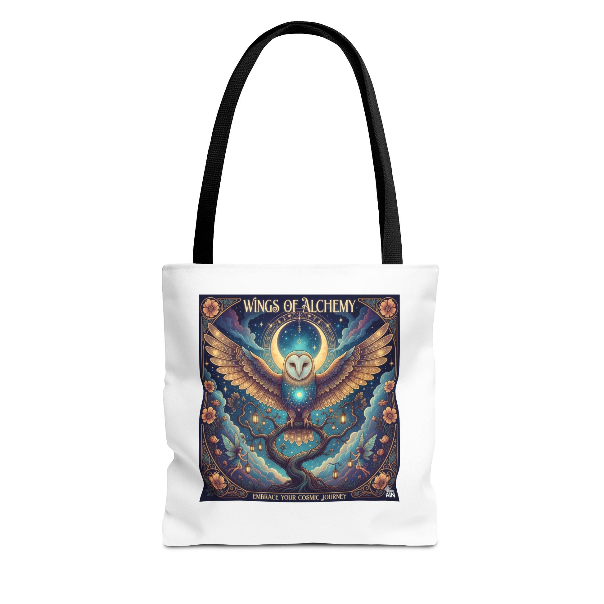 Mystical Owl Tote Bag, Boho Chic Tote, Alchemy Art Handbag, Gift for Nature Lovers, Eco-Friendly Shopping Bag