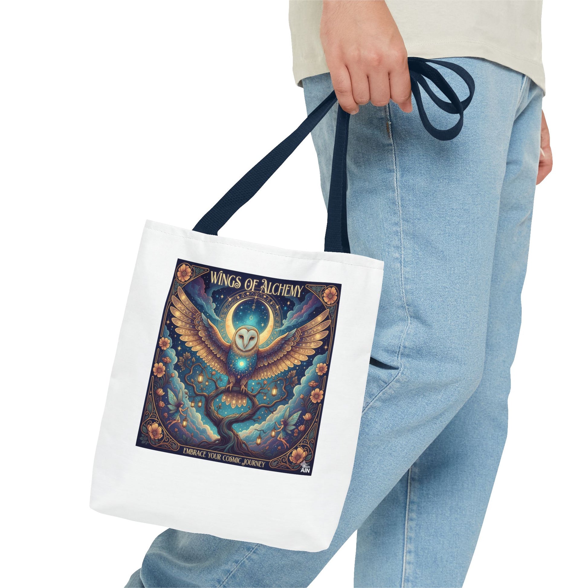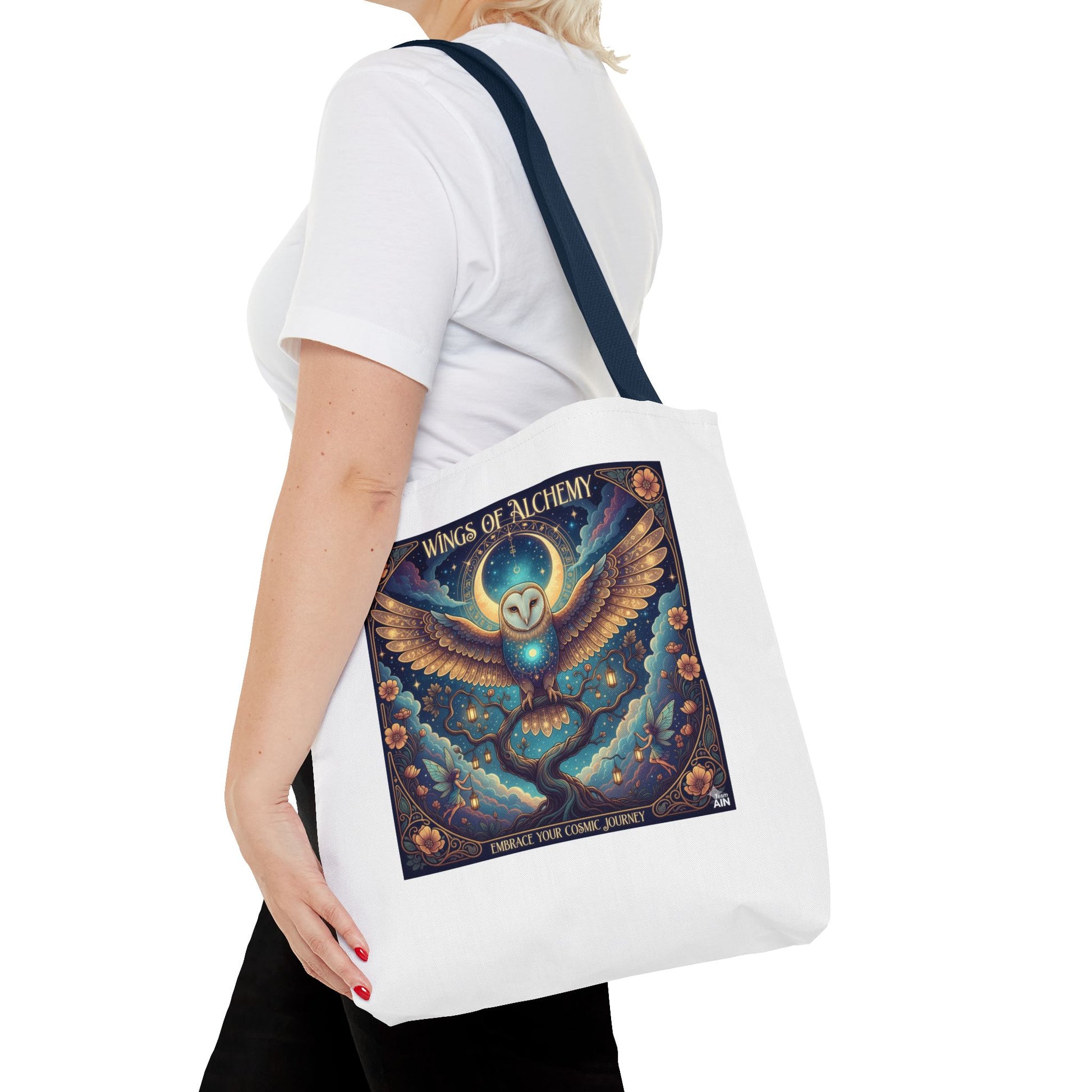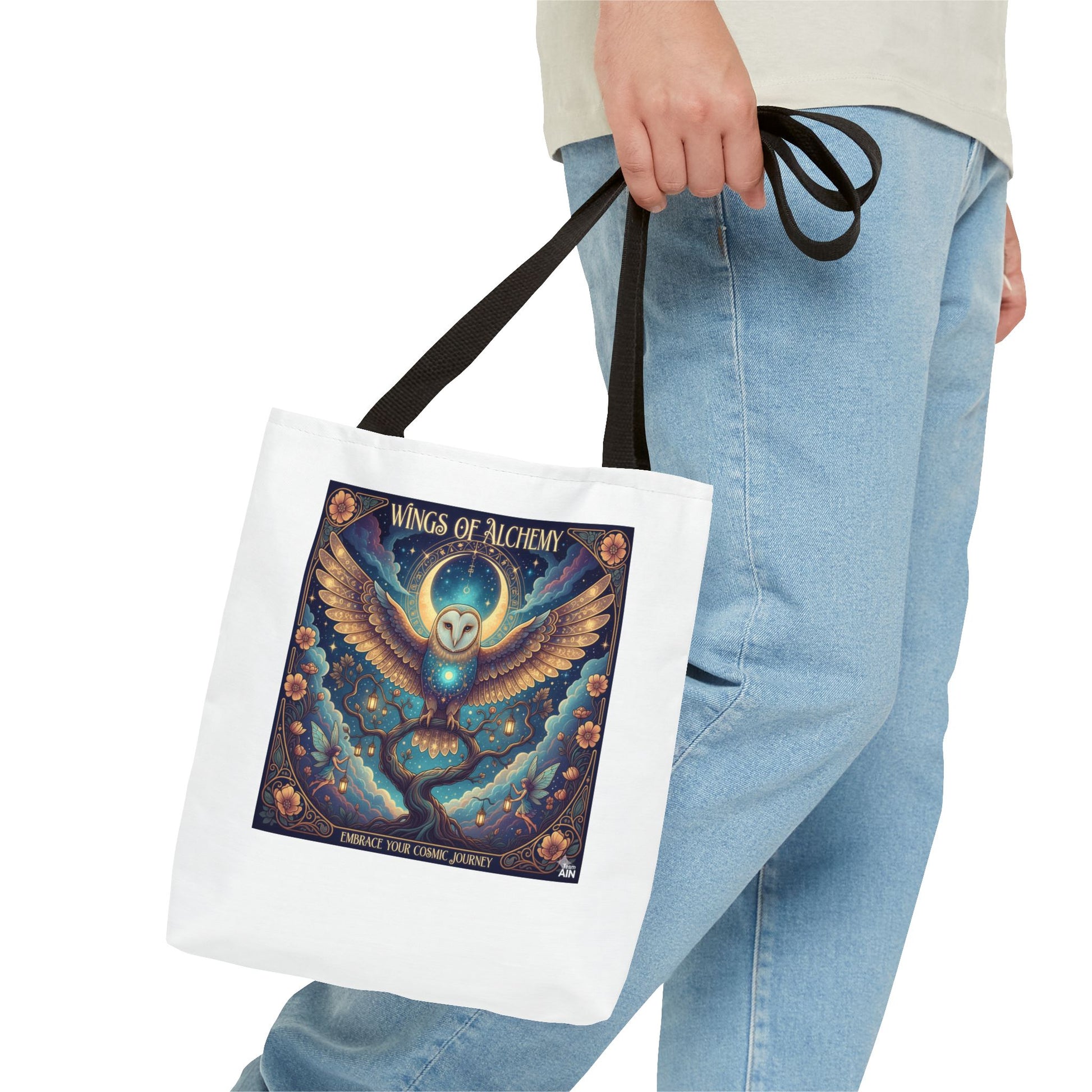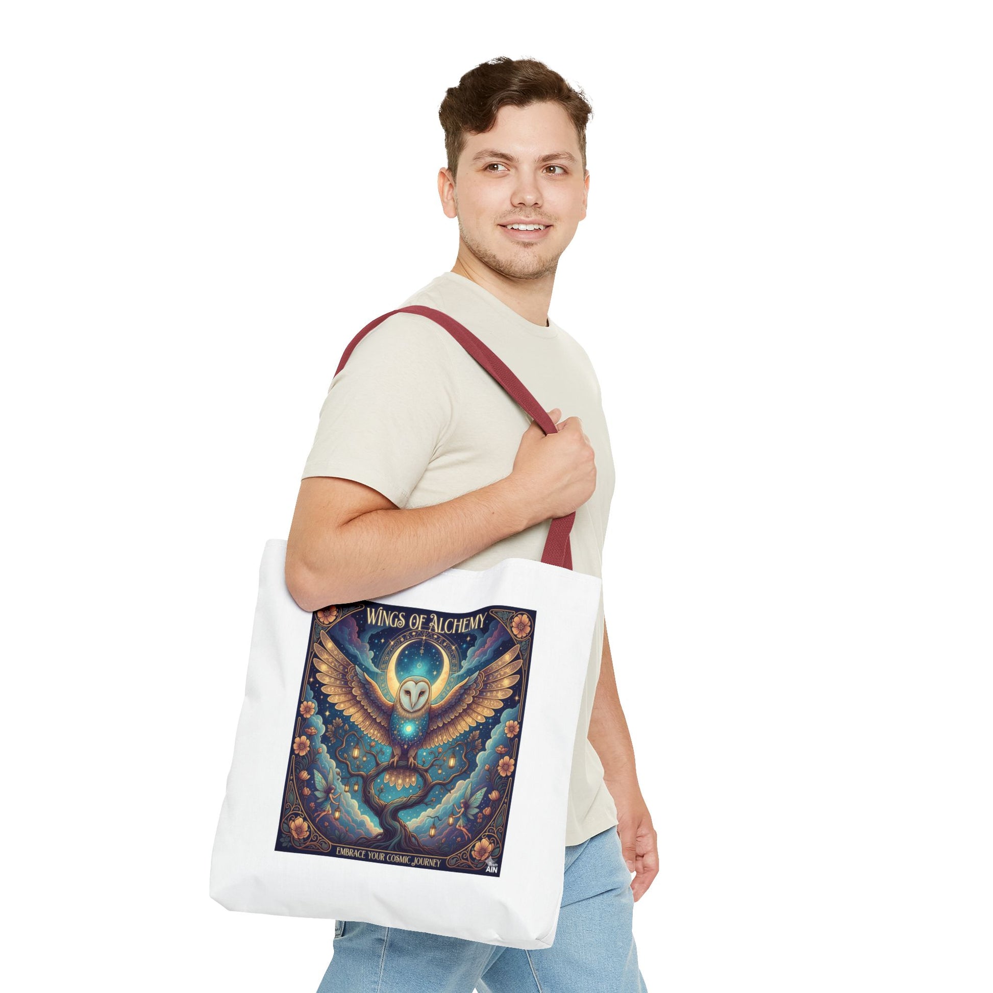 Mystical Owl Tote Bag, Boho Chic Tote, Alchemy Art Handbag, Gift for Nature Lovers, Eco-Friendly Shopping Bag