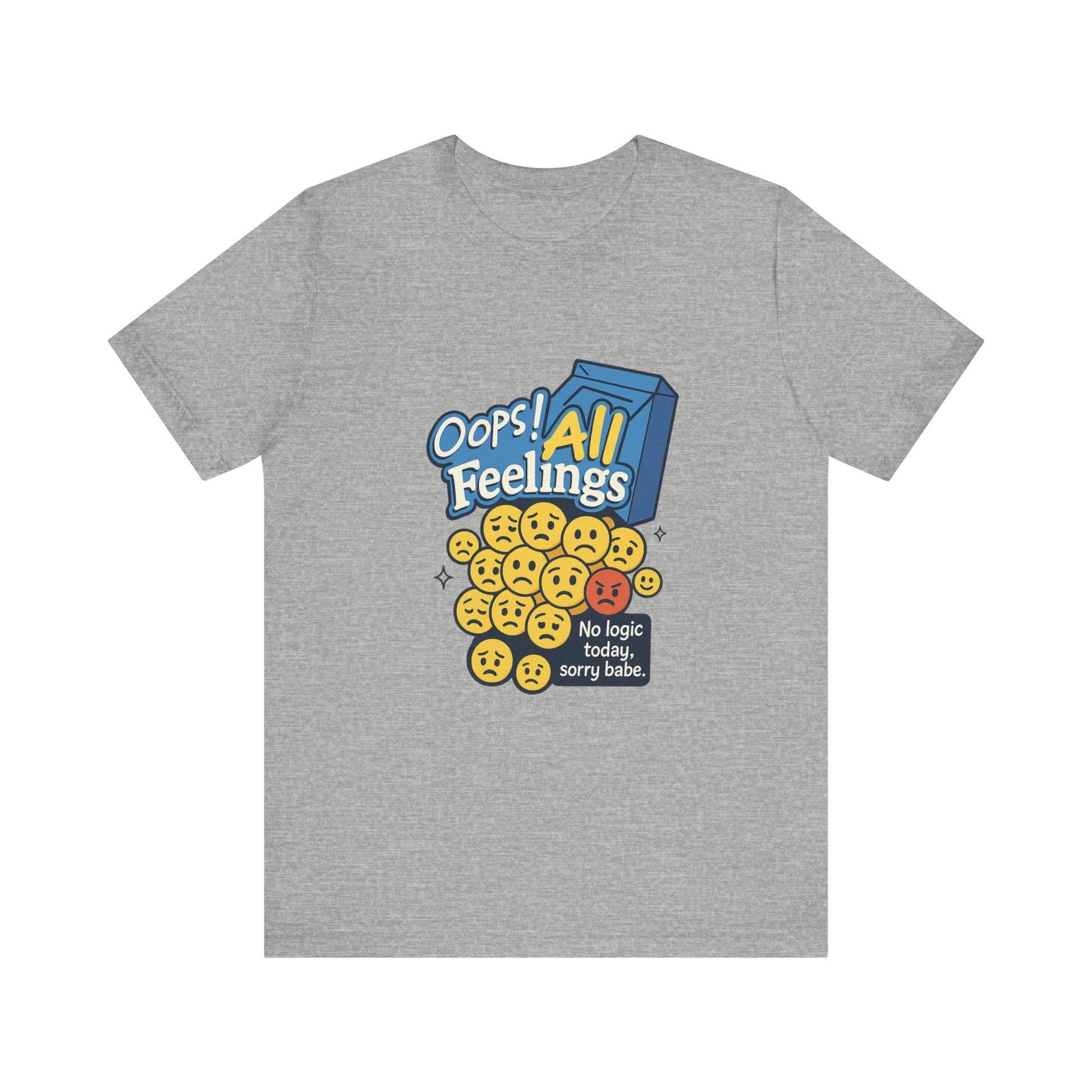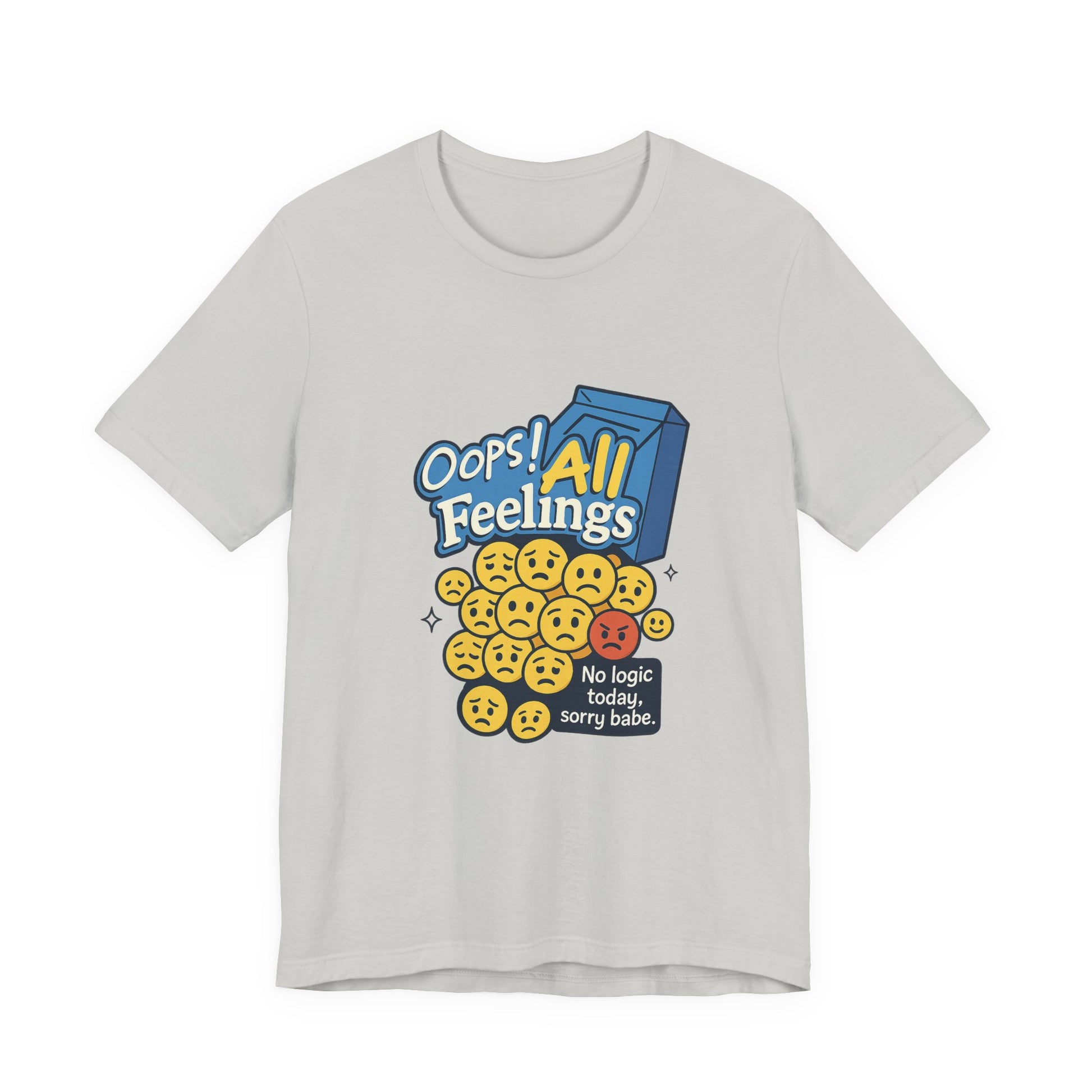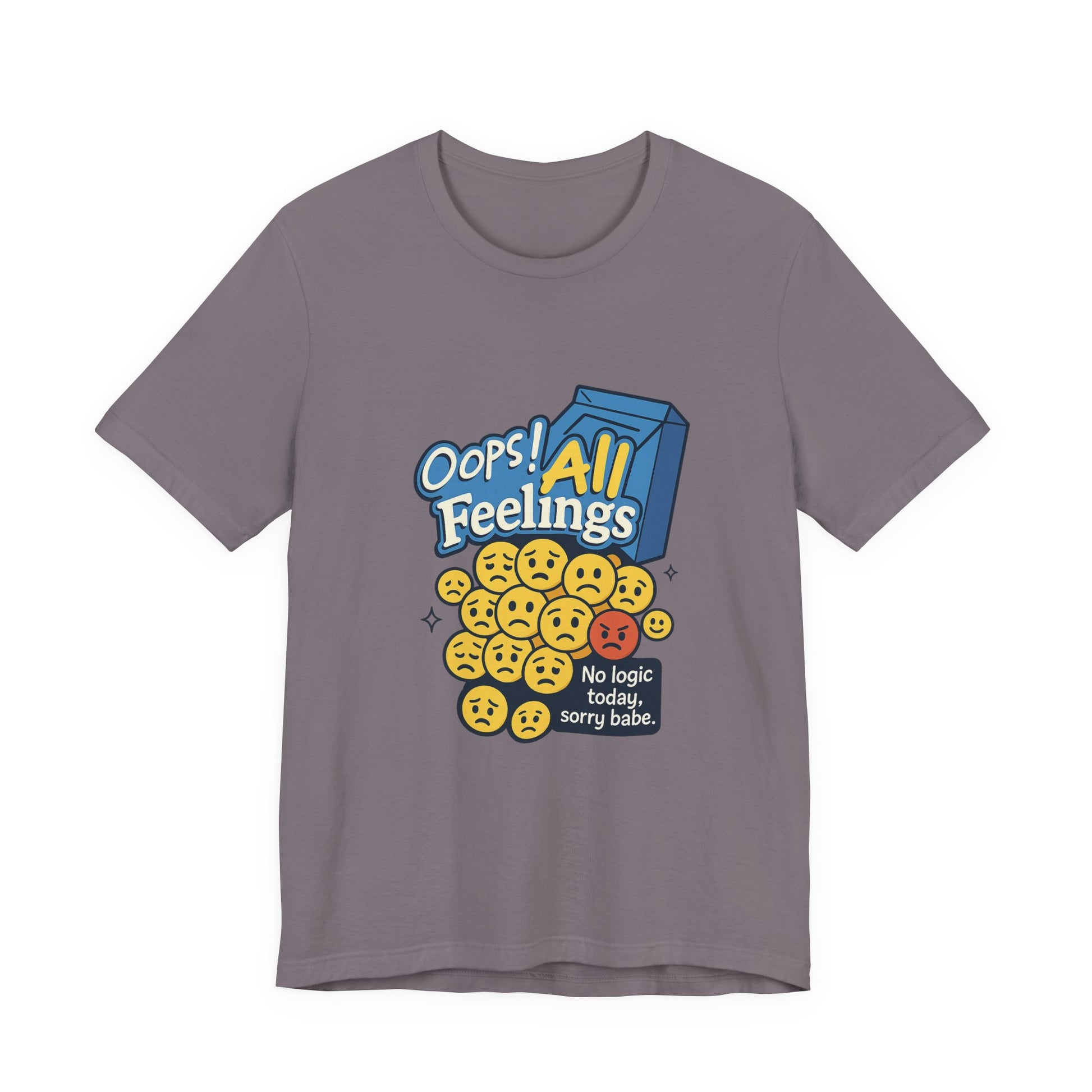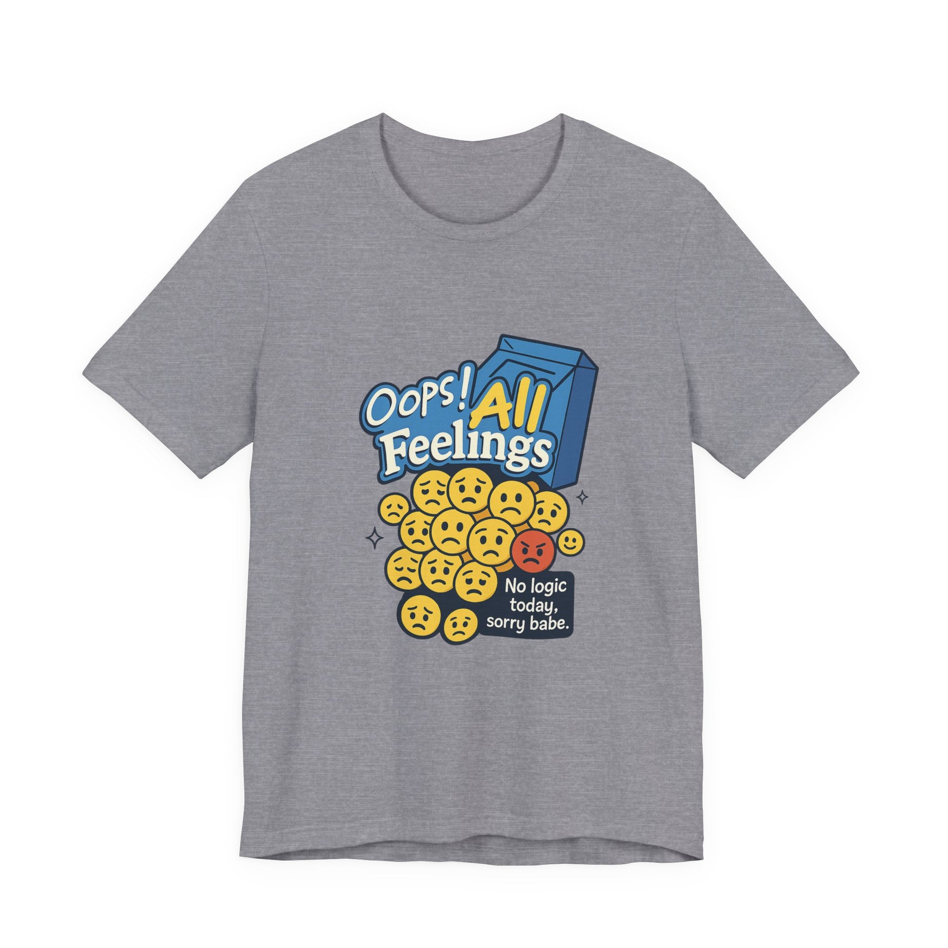 Oops! All Feelings Tee, Funny Graphic T-Shirt for Emotions, Unisex Casual Wear, Great Gift for Friends, Everyday Fun Apparel
