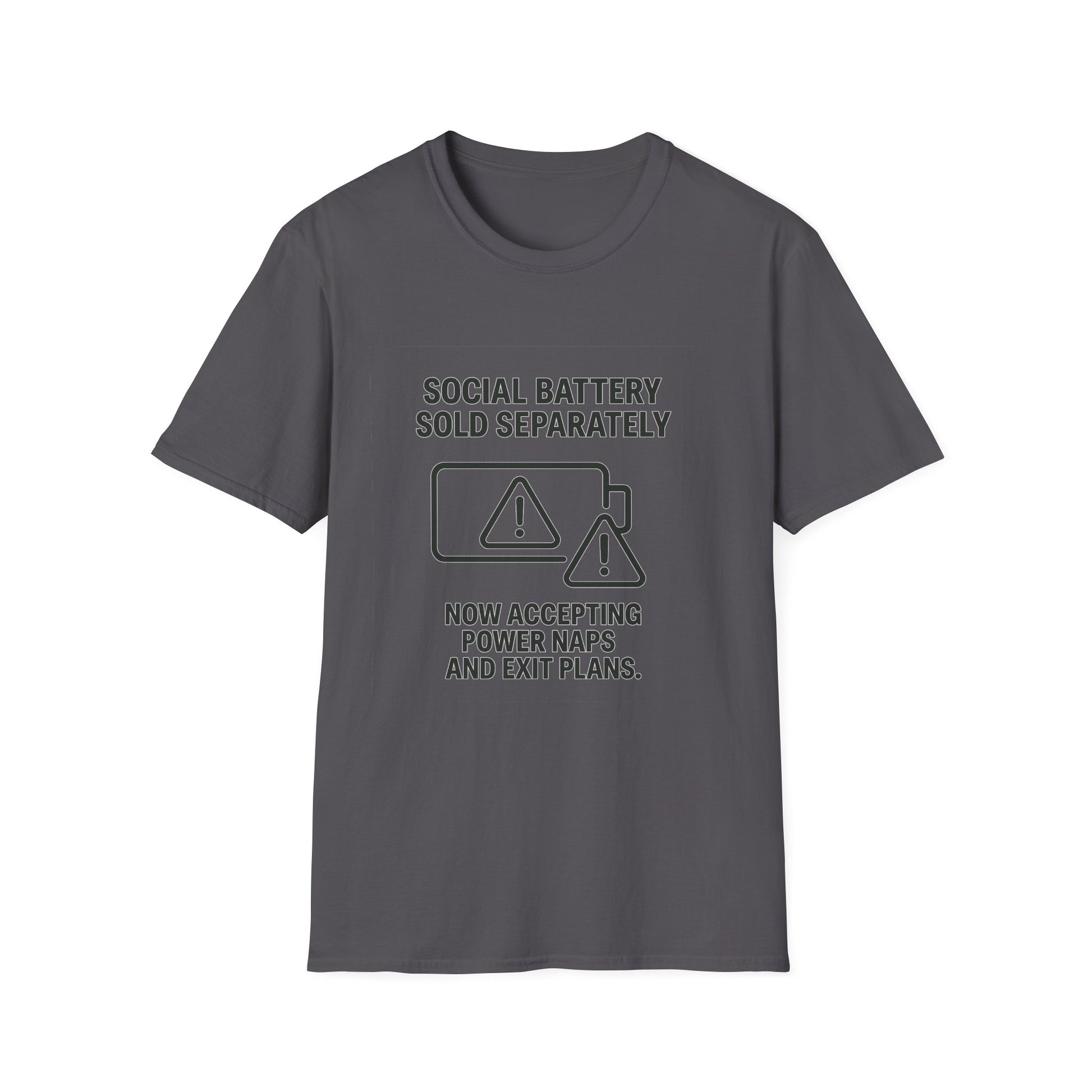 Show your social battery status with this witty tee. The “Social Battery” graphic playfully signals when you’re running low or fully charged. Soft cotton and a unisex fit make it comfortable for any occasion.