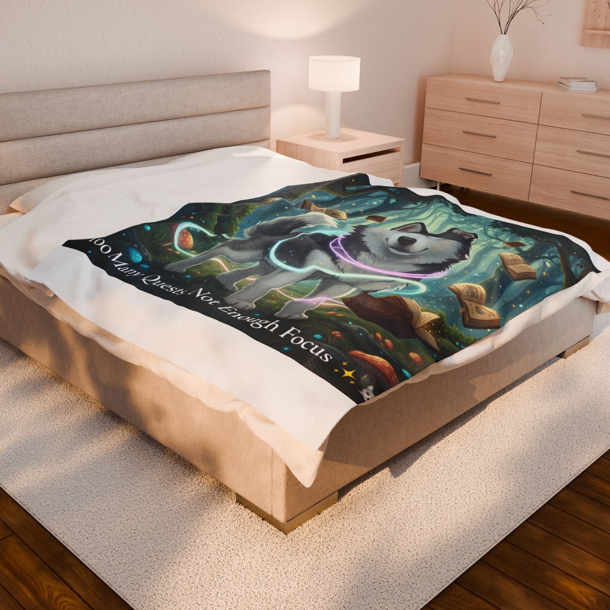 Too Many Quests Blanket | Fantasy Husky Gamer Blanket