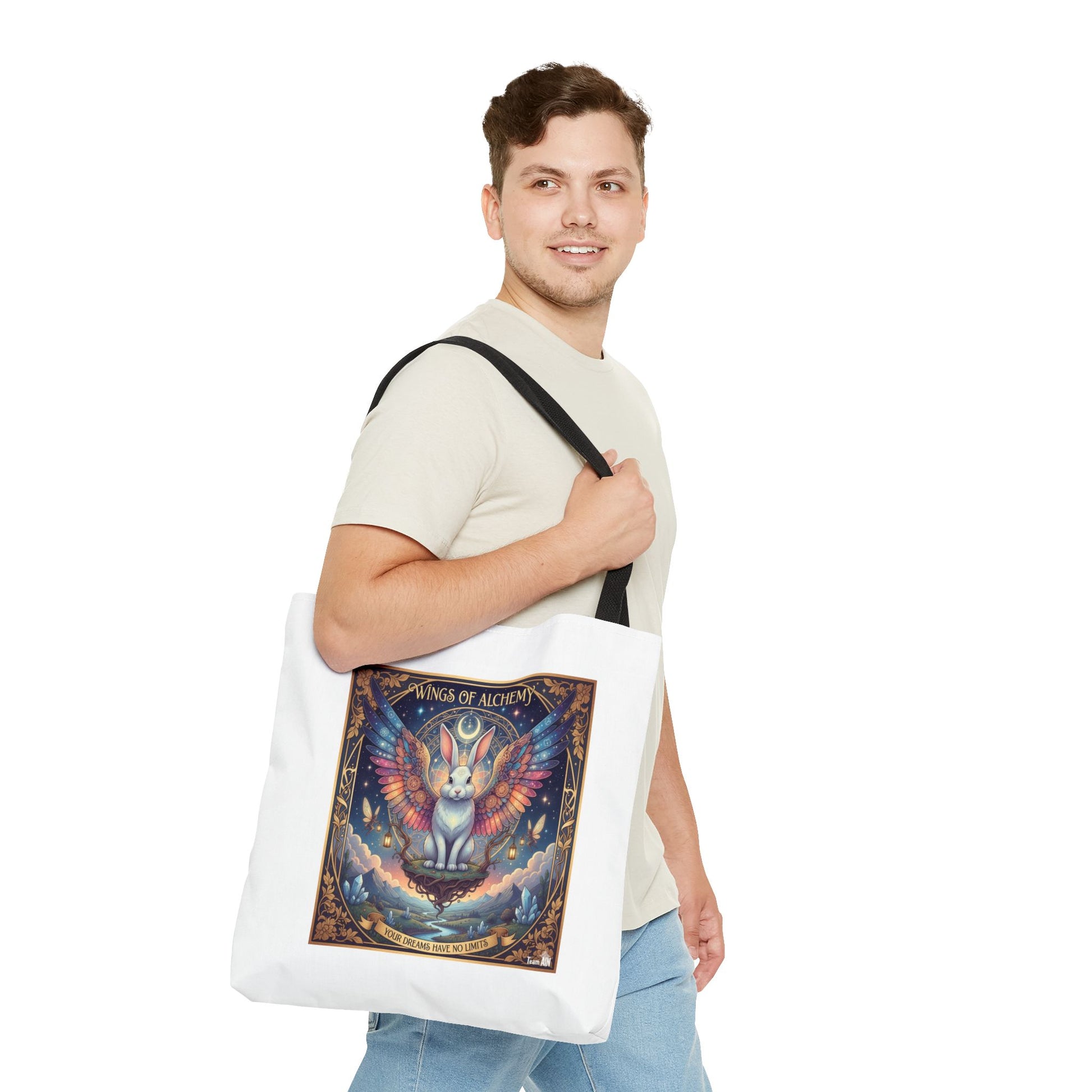 Whimsical Cat Tote Bag, Eco-Friendly Shopping Bag, Art Print Tote, Magical Animal Gift, Cute Cat Lover Accessory