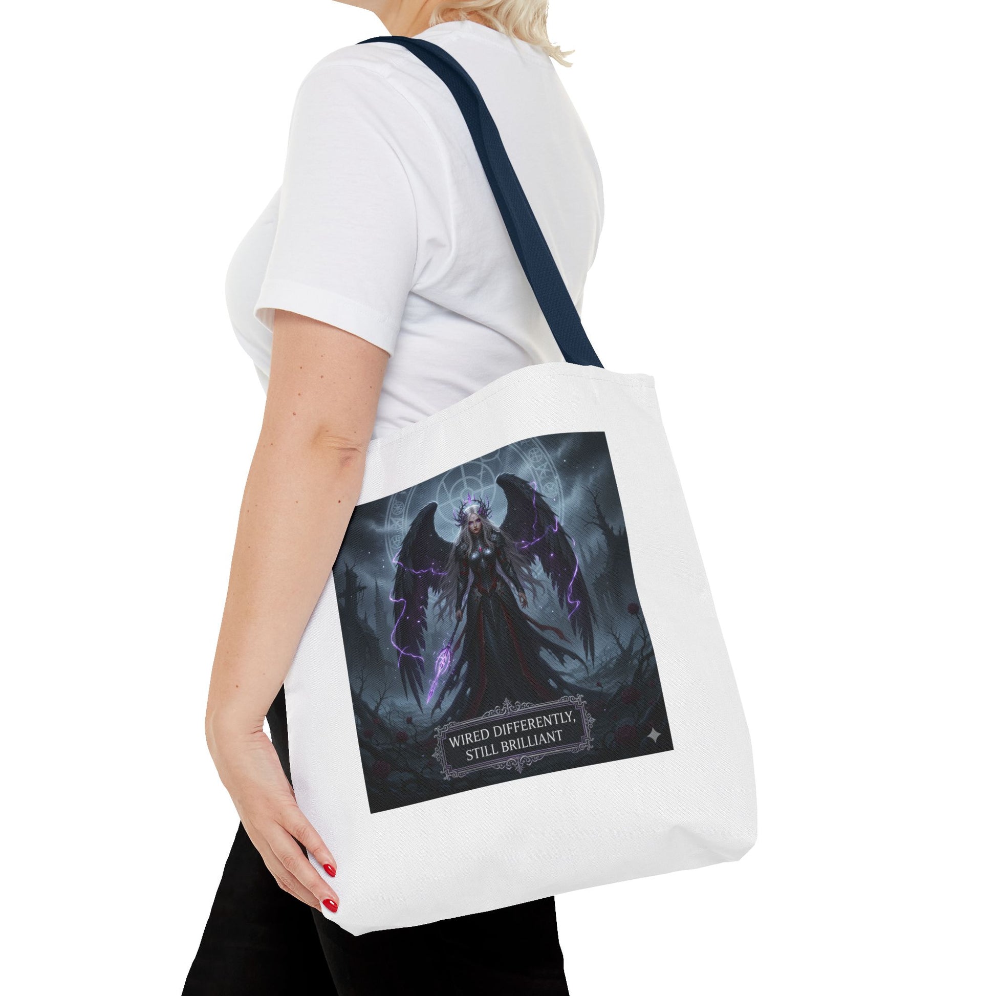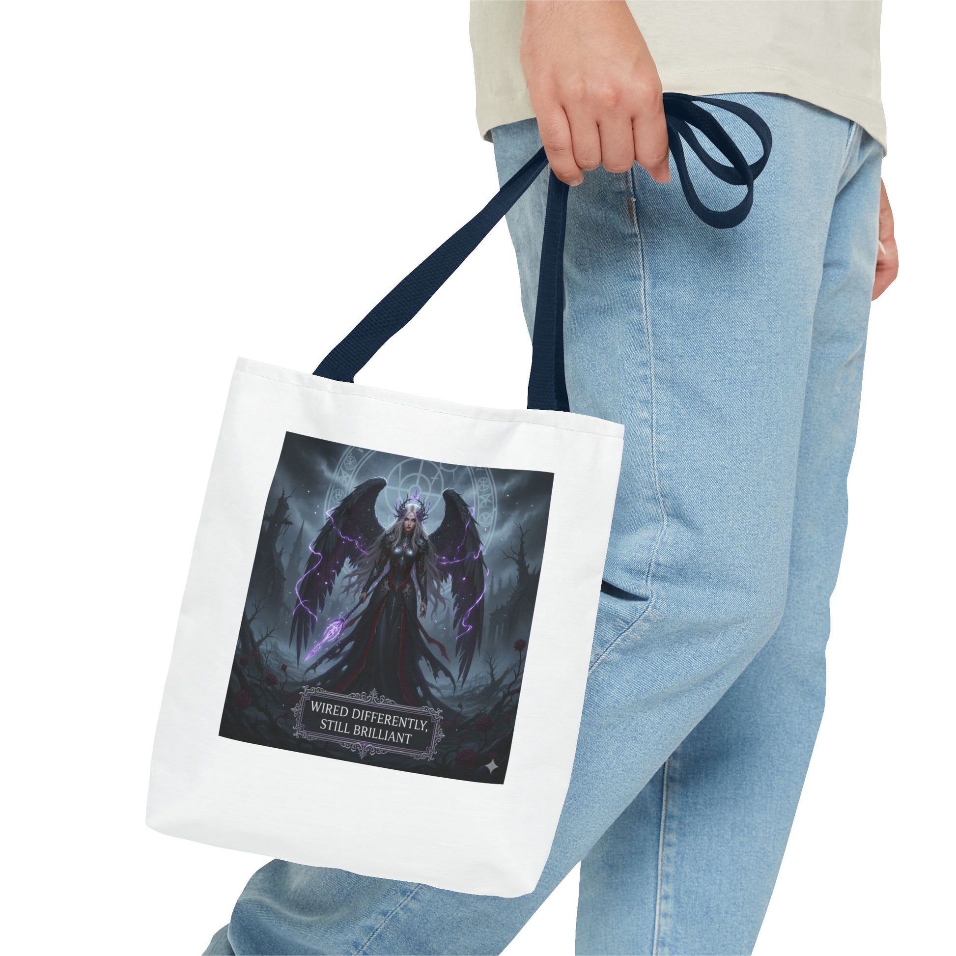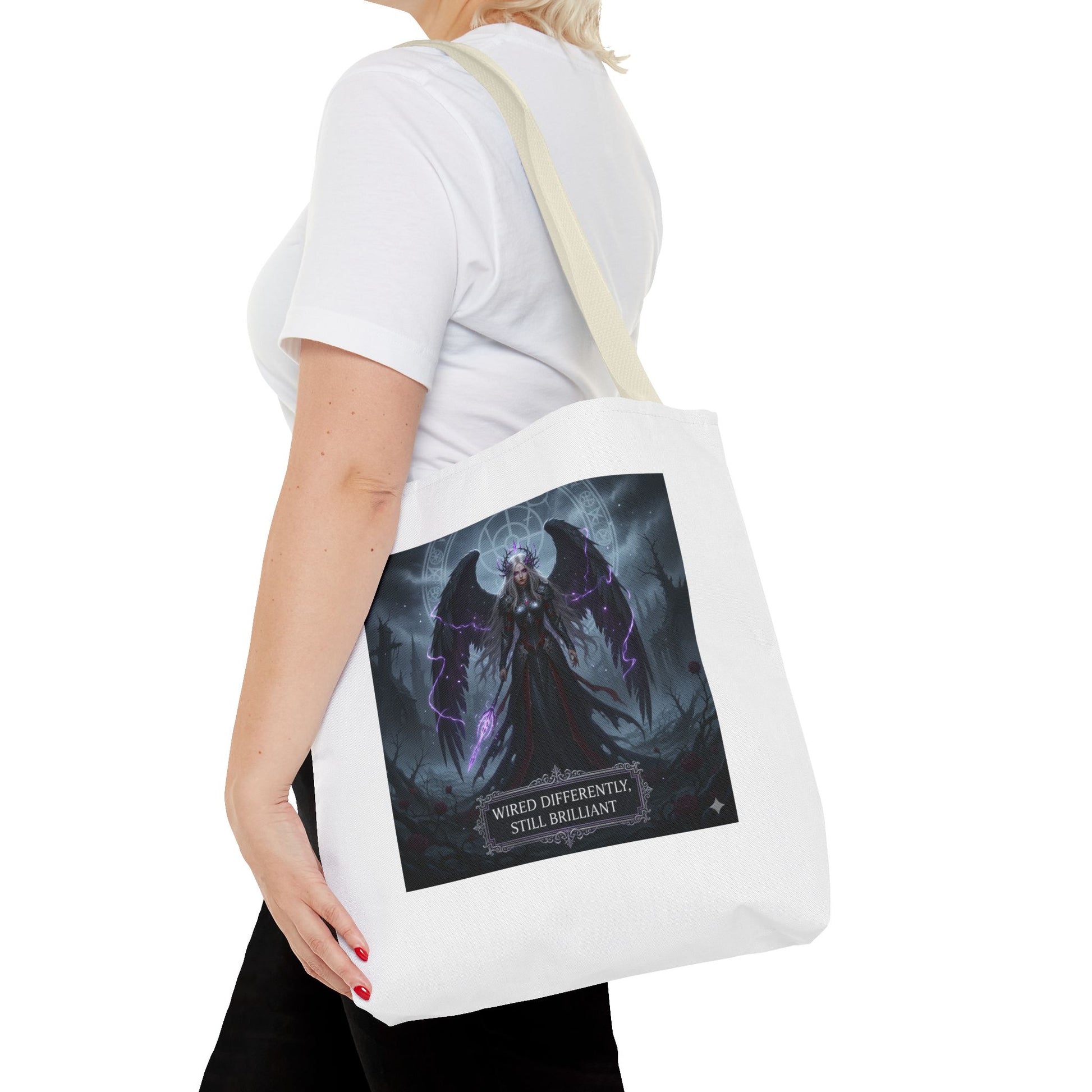 Ideal for fans of gothic and fantasy aesthetics, this tote is a versatile accessory for daily wear, conventions, or gifting to someone who embraces their different wiring with brilliance and pride.