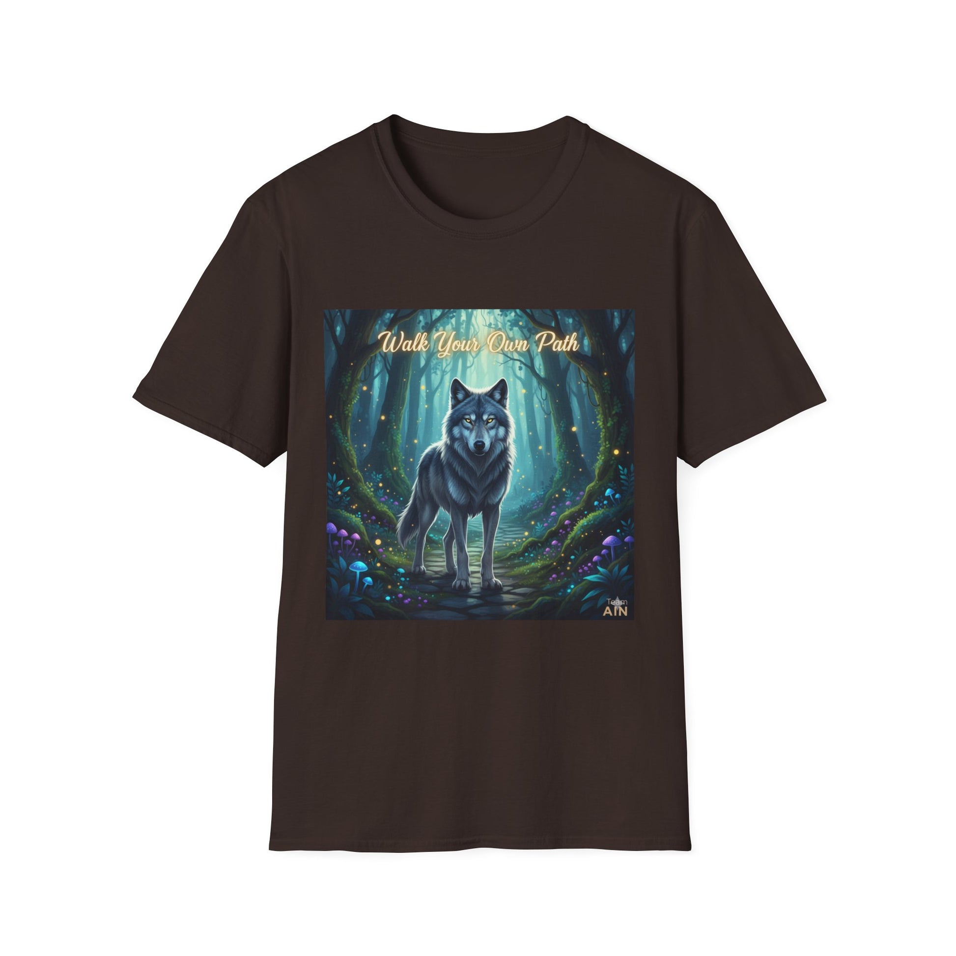 Wolf Forest Unisex Softstyle T-Shirt, Nature Lover Tee, Bohemian Graphic Shirt, Gifts for Adventurers, Vintage Animal Art
